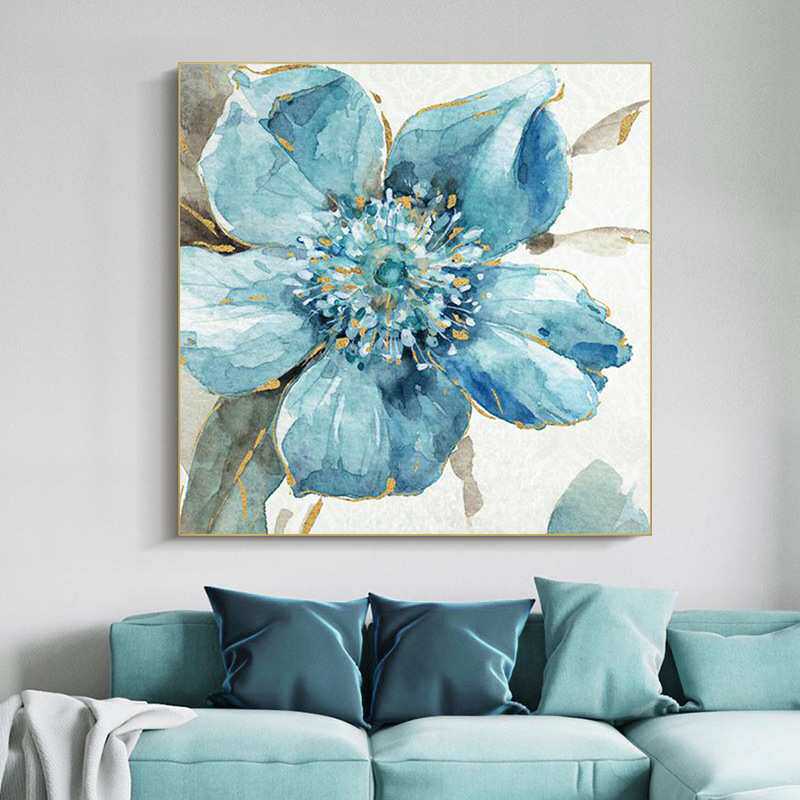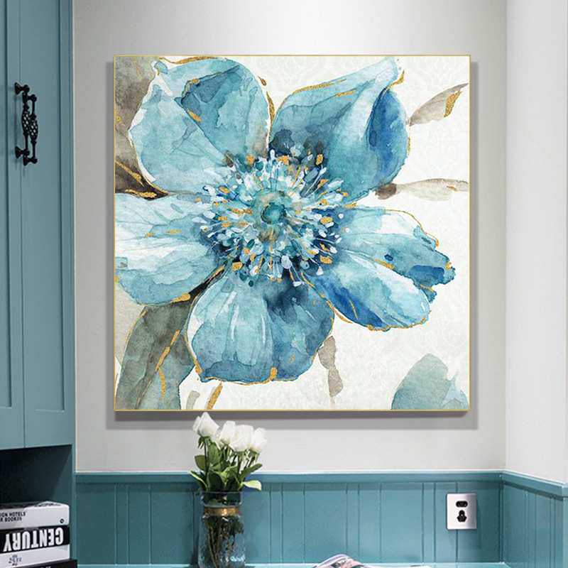 油画手绘《蓝伊》客厅花卉装饰画玄关抽象挂画餐厅现代纯手工壁画