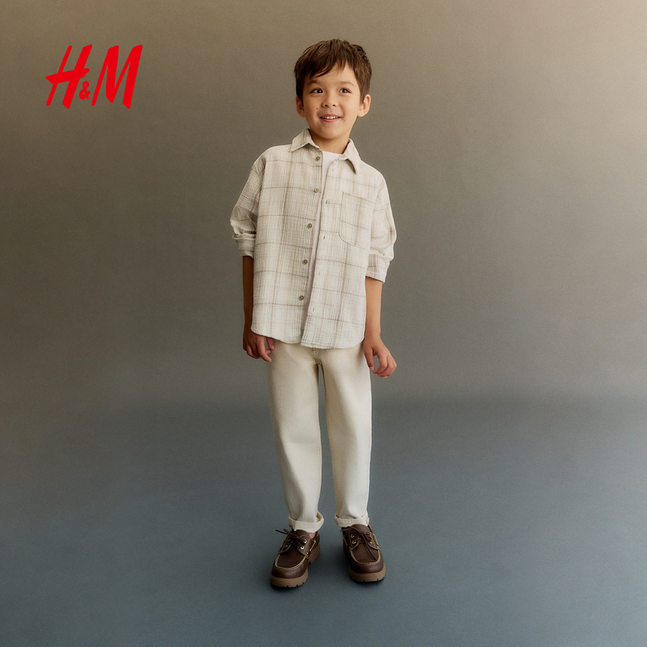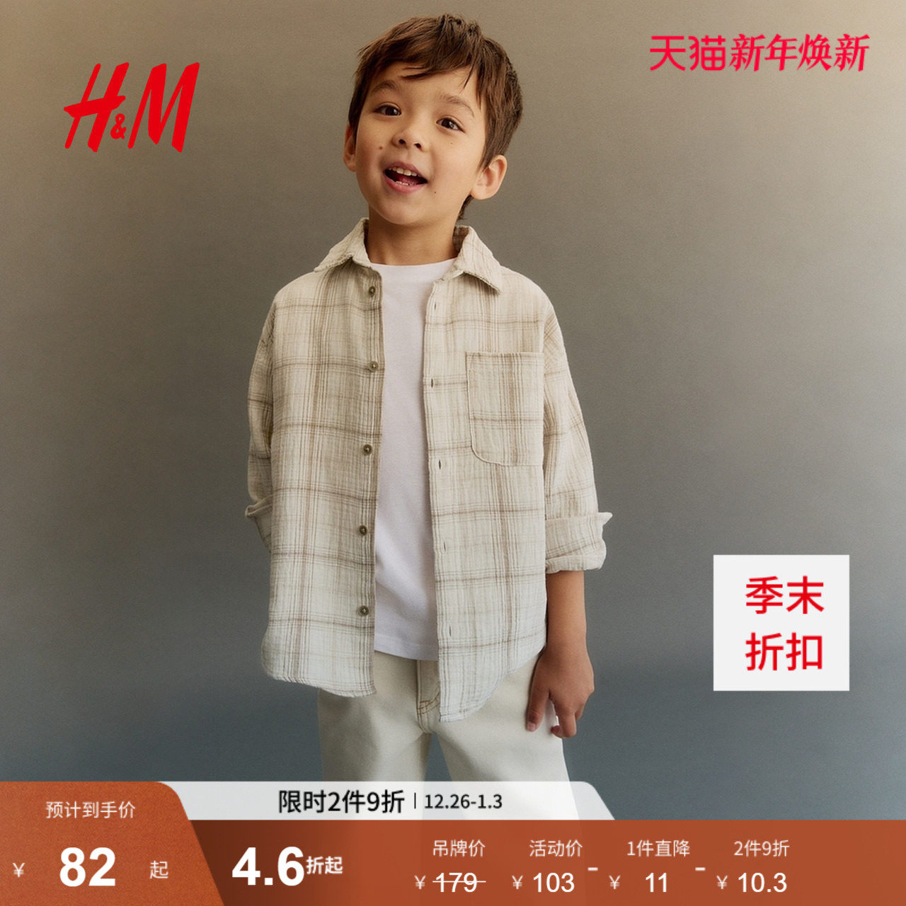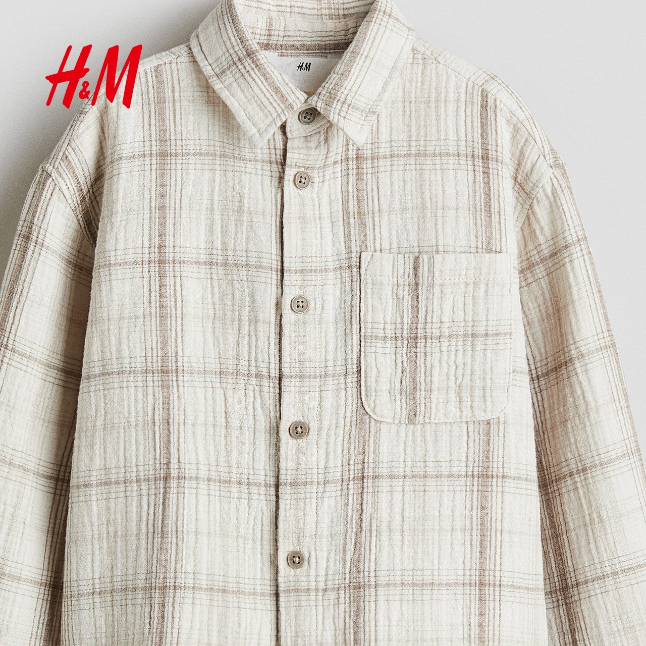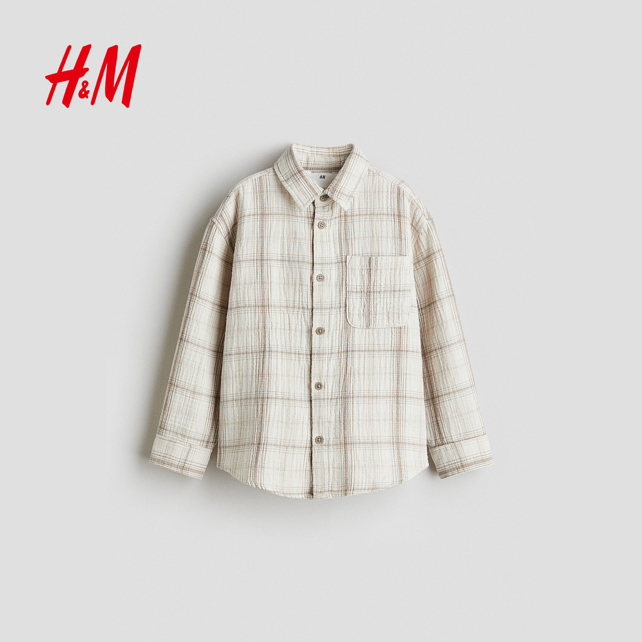 HM2025年冬季新款童装儿童男童纯棉薄纱衬衫1290590