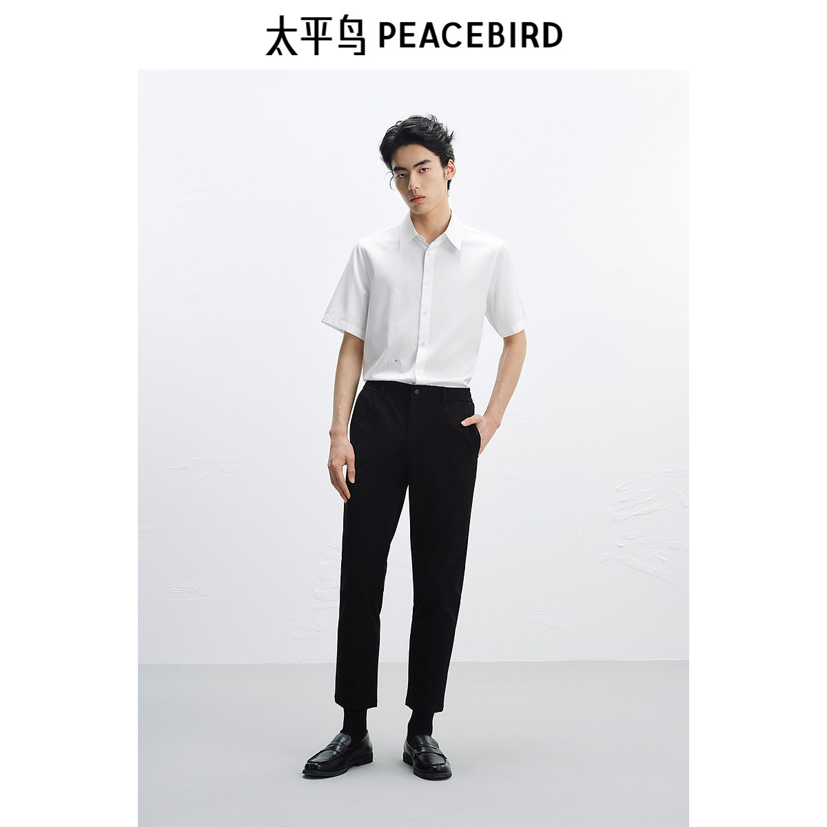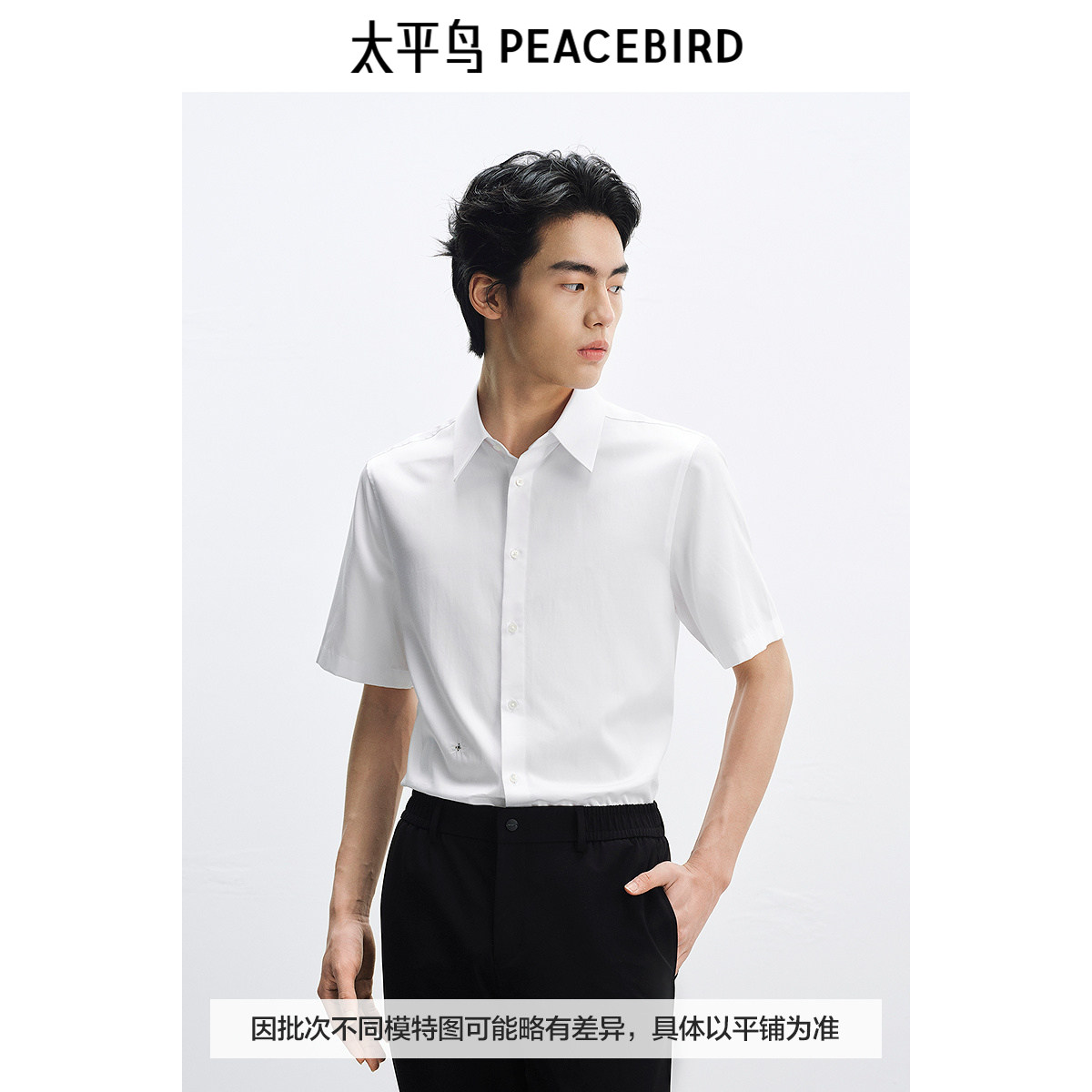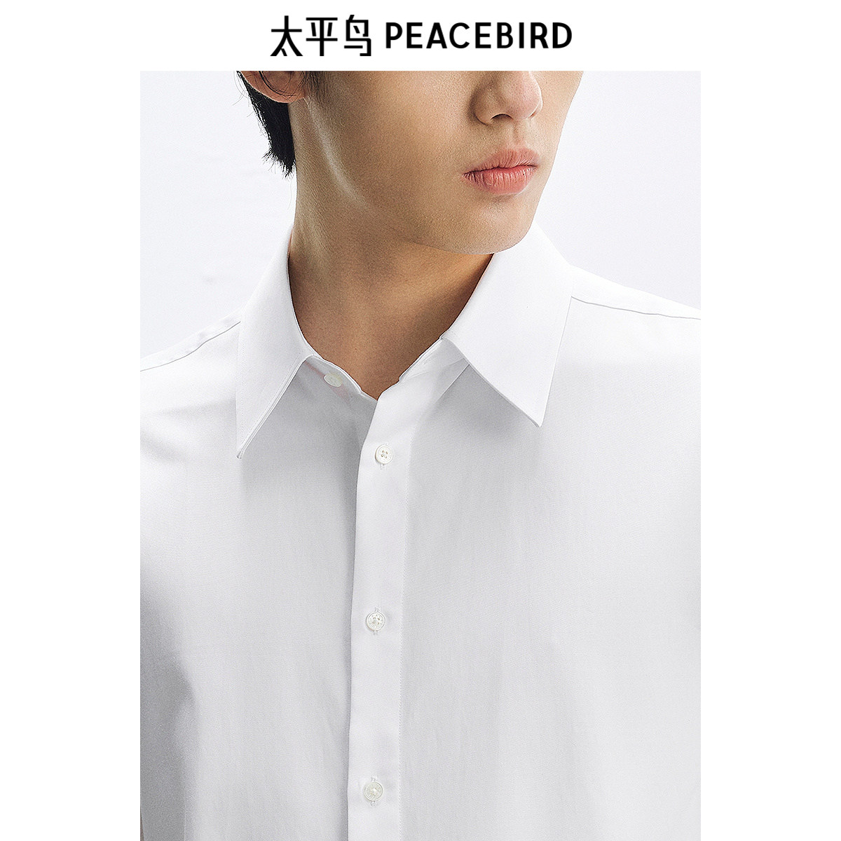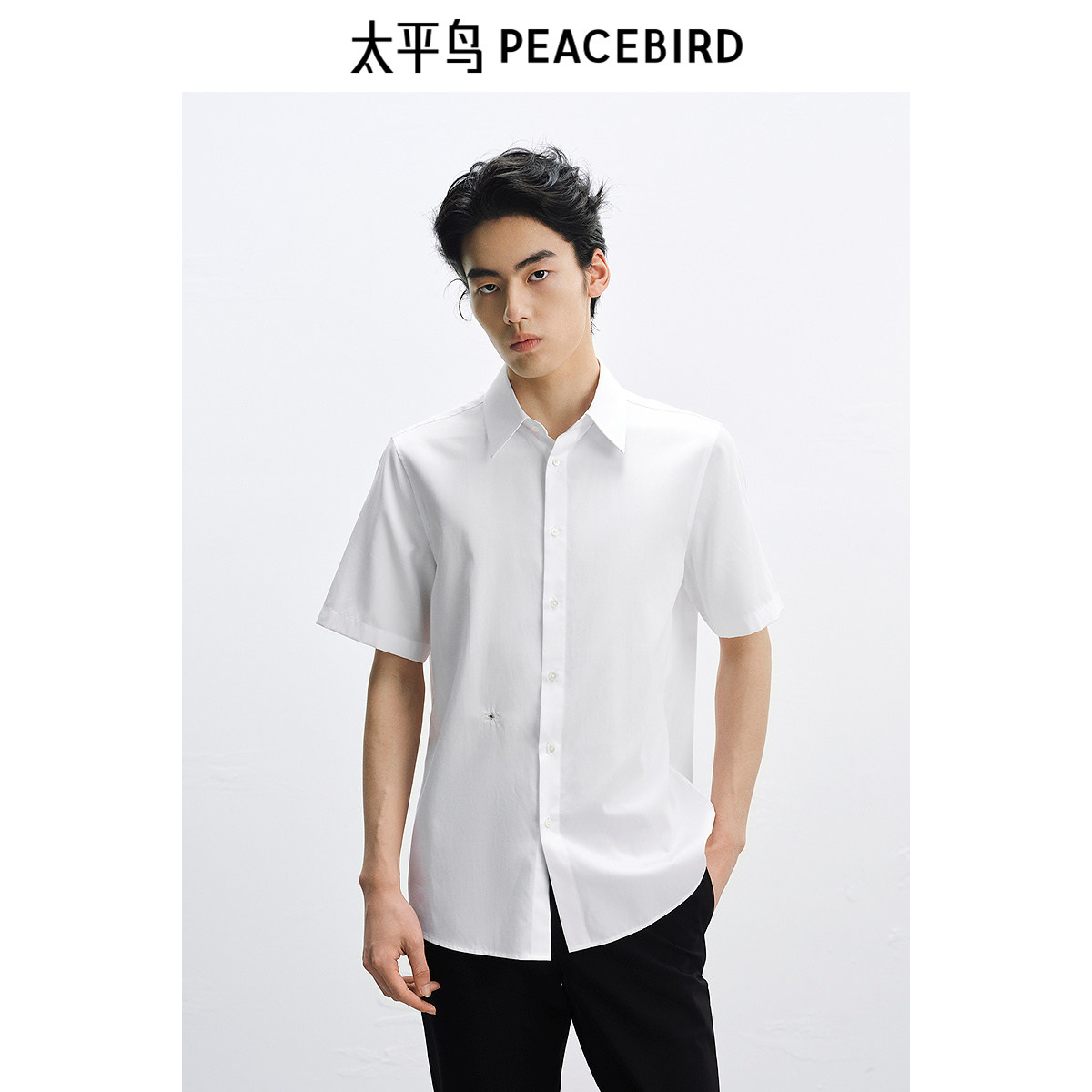 太平鸟男装 休闲衬衫纯色斯文商务休闲短袖打底衫修身衬衣男