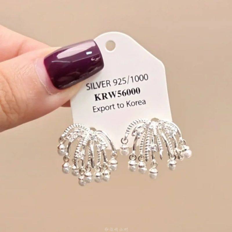 fever同款珍珠耳钉999纯银施家耳环2025新款爆款高级轻奢正圆耳饰