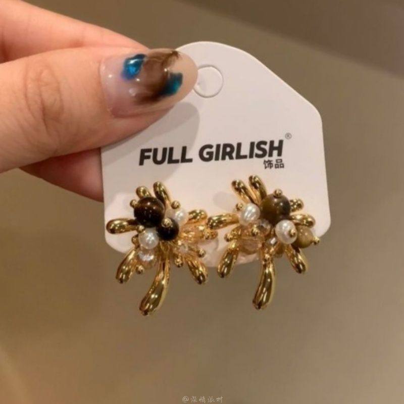 太阳花珍珠耳钉女2025新款爆款轻奢小众耳环高级感无耳洞耳夹耳饰