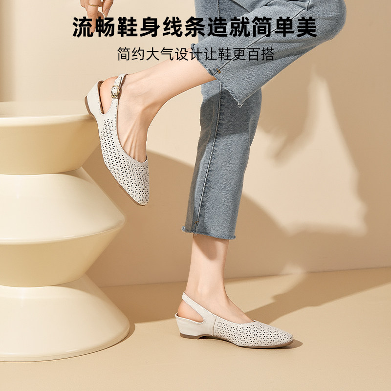 【羊皮】包头凉鞋女夏季镂空真皮单鞋2025新款妈妈鞋后空坡跟单鞋