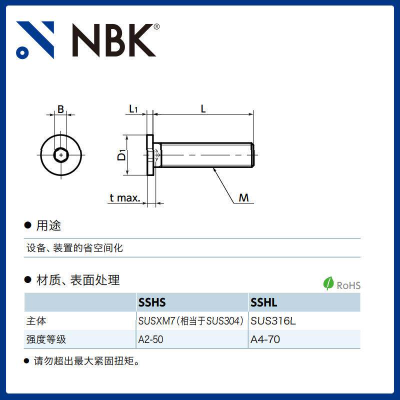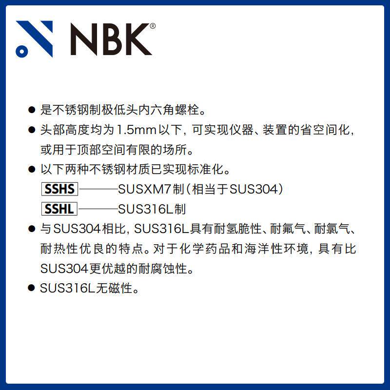 NBKSSHL不锈钢极短头内六角螺栓紧固件螺丝厂家直供机械零配件
