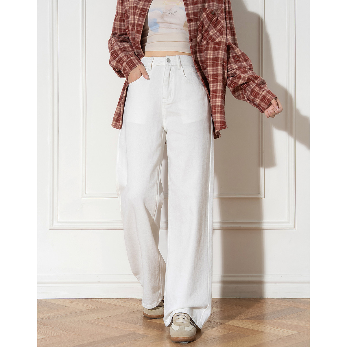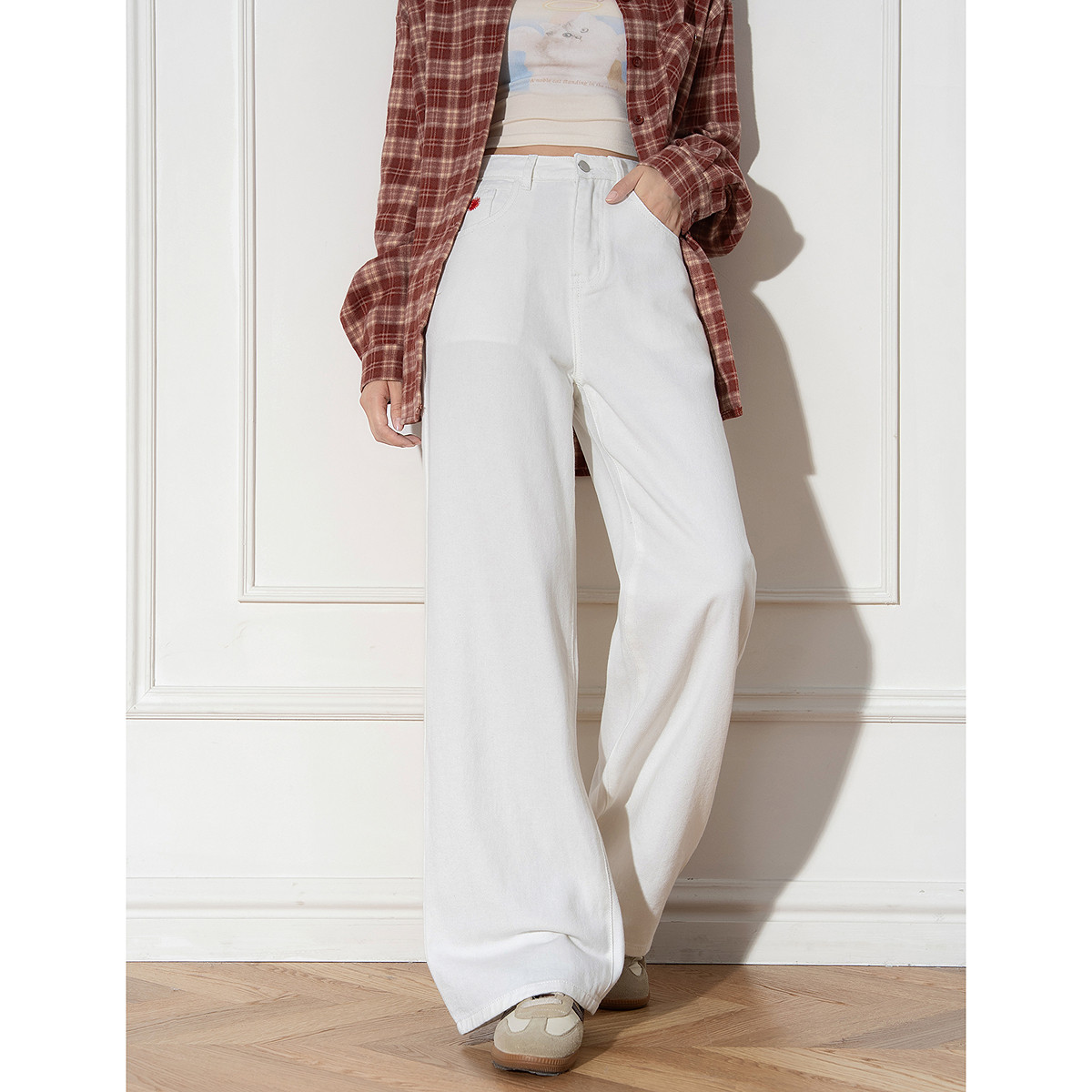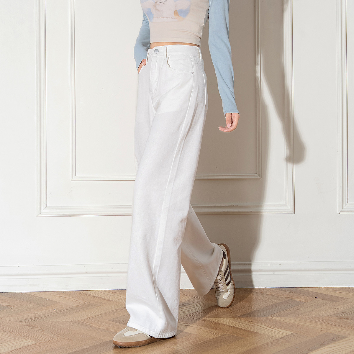 森柔牛仔|森马阔腿牛仔裤女2025秋冬白色牛仔裤简约女士高腰裤子