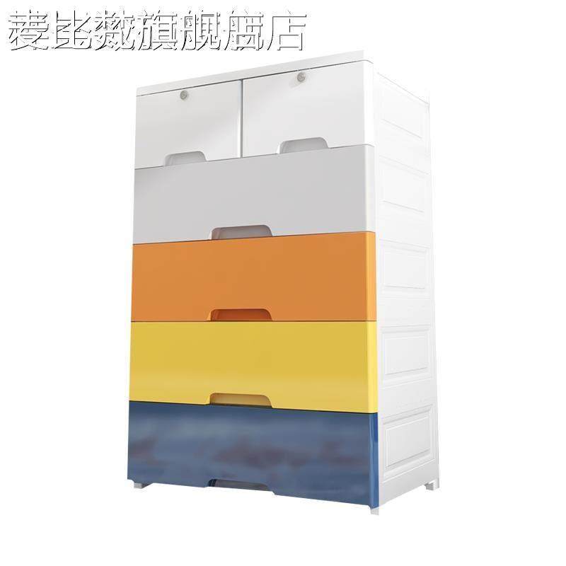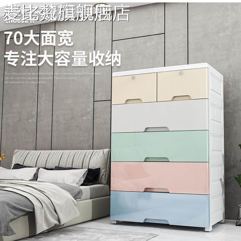麦比梵70面宽加厚抽屉式收纳柜子塑料家用置物柜儿童衣柜玩具储物五斗柜摆件垫垫床笠拉车
