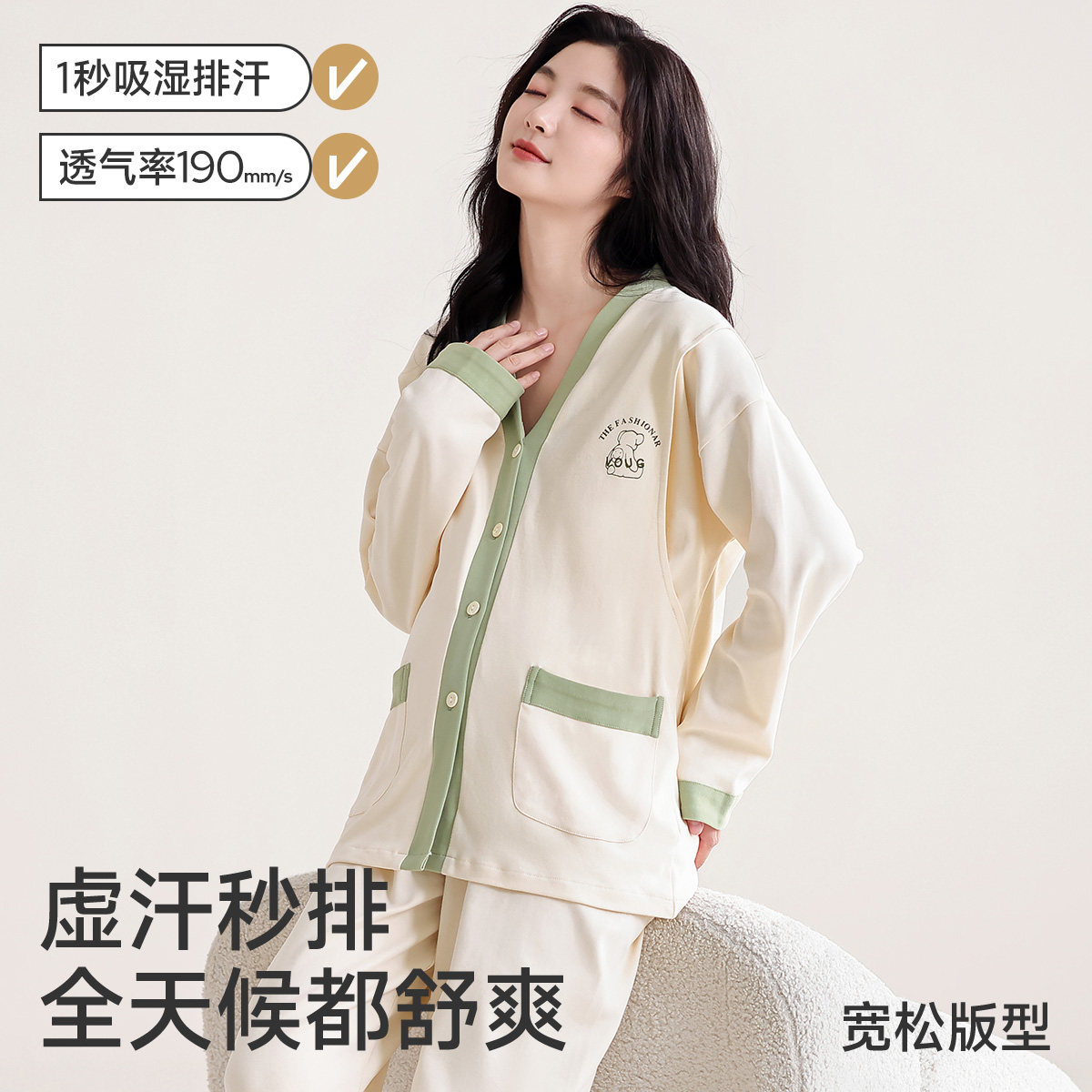 空气棉月子服秋冬季纯棉产后12月份全棉吸汗喂奶产妇哺乳孕妇睡衣