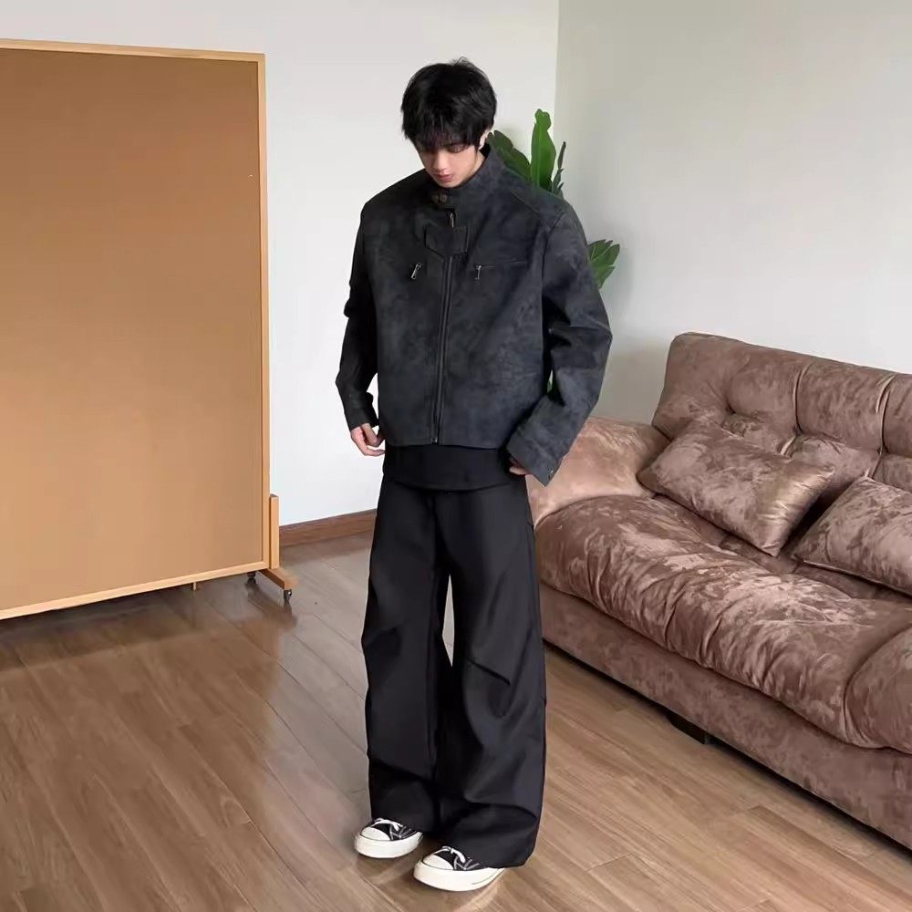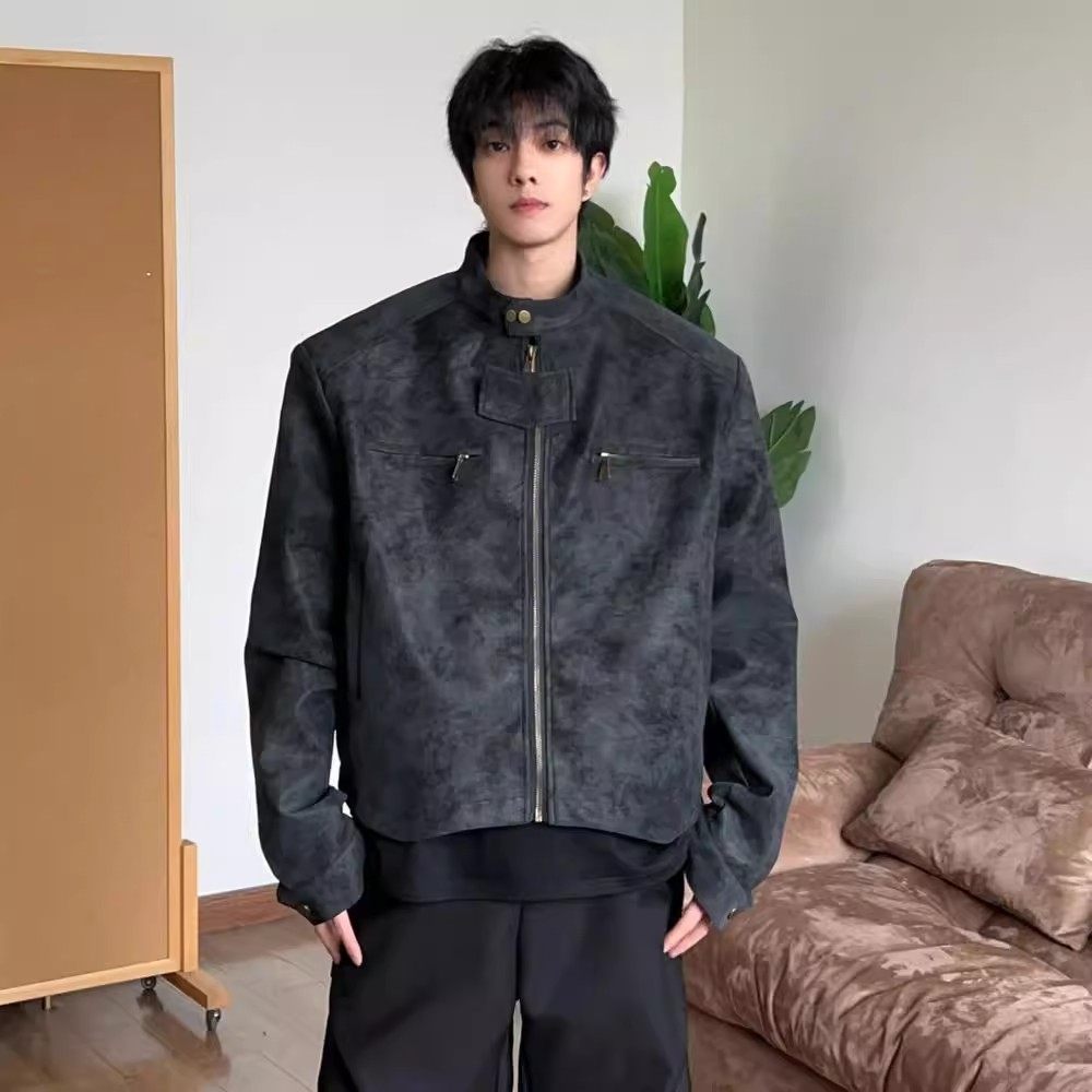 PU皮皮衣男夹克宽松立领短款休闲春秋百搭潮流美式机车服复古外套