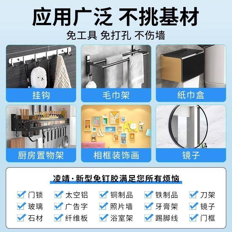 免钉胶强力胶万能胶水贴墙专用卫生间金属镜子踢脚线窗帘轨道万能胶比钉牢固定粘胶木地板瓷砖墙面修复免打孔