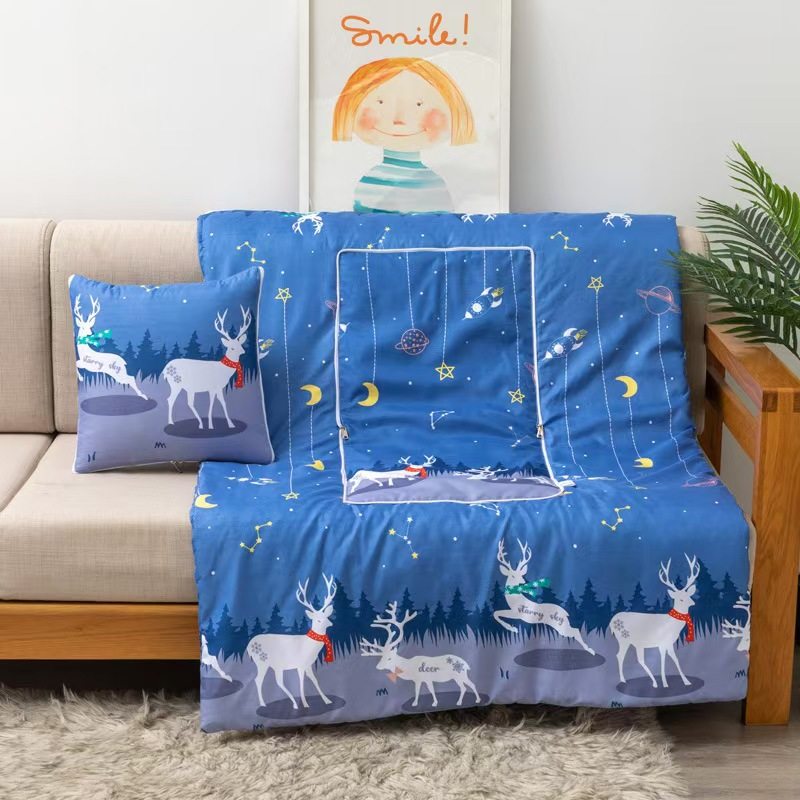全棉色织抱枕被子两用二合一午休空调被幼儿园学生午睡纯棉夏凉被