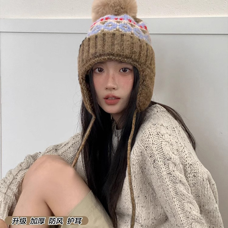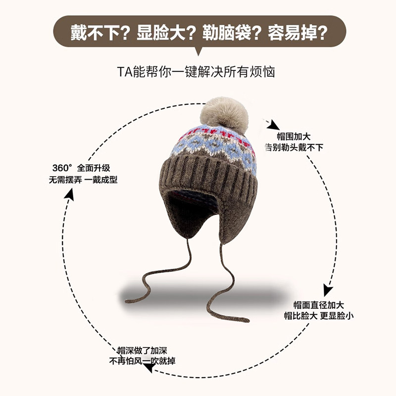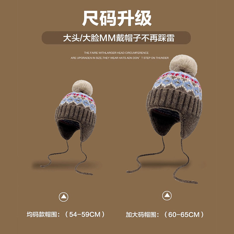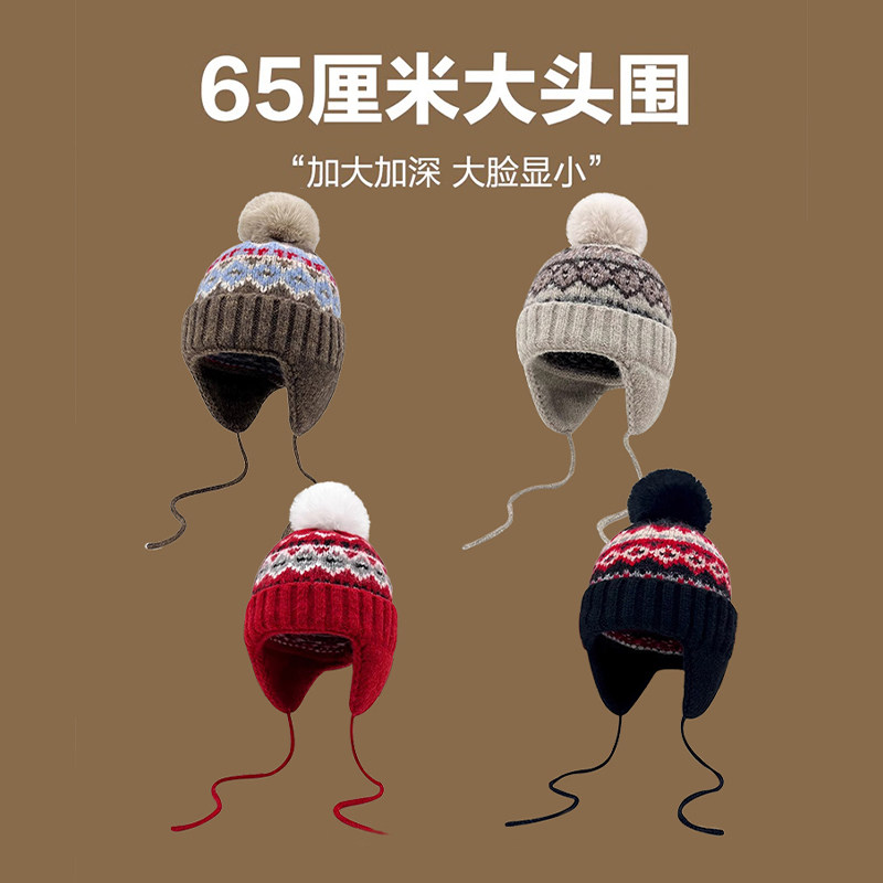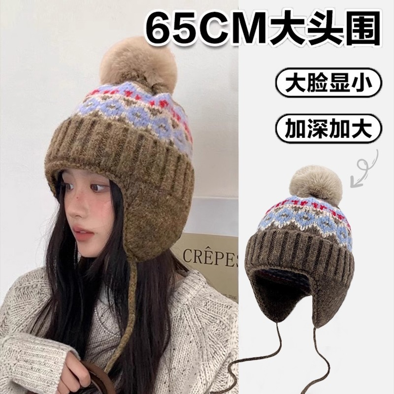 费尔岛风护耳毛线帽女2025冬川西旅游拍照大头大码针织包头雷锋帽