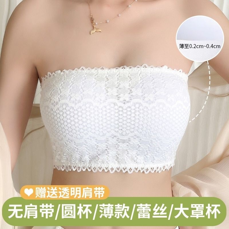 美泊姿圆杯大罩杯薄款抹胸内衣女无肩带裹胸内搭蕾丝打底防走光女