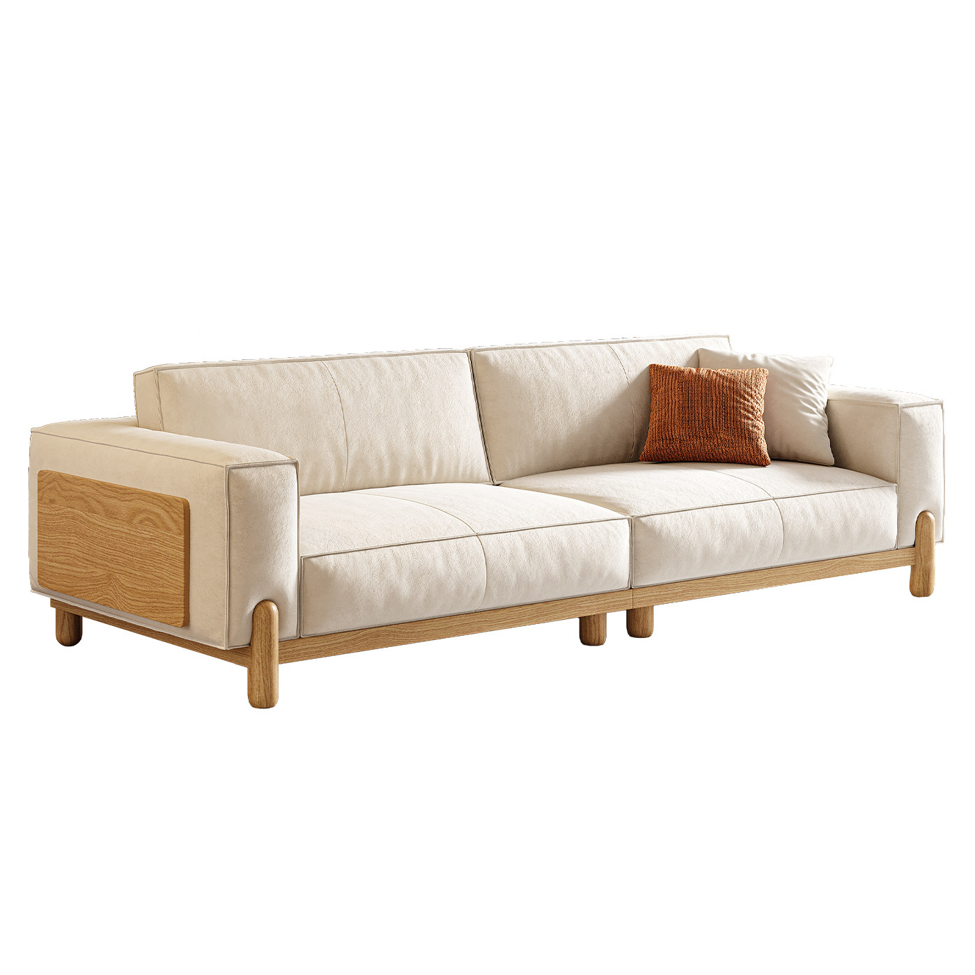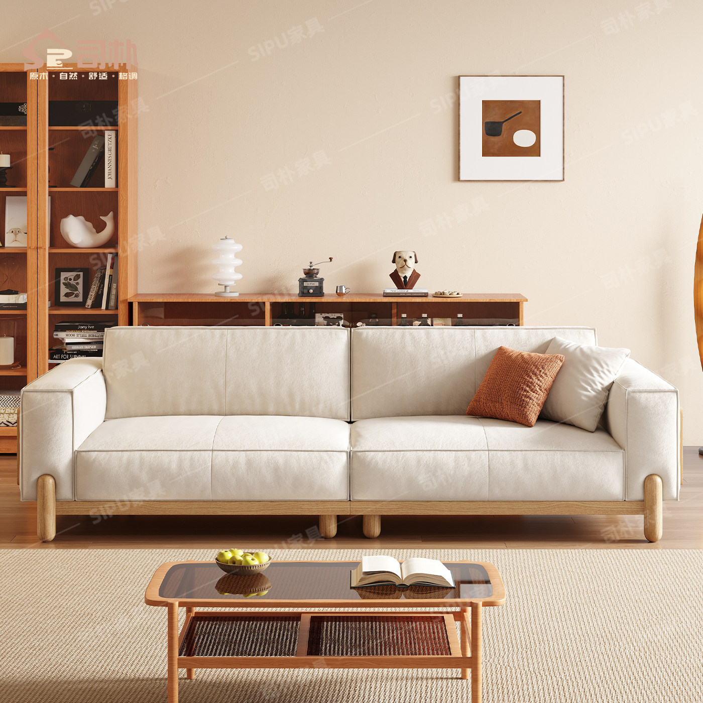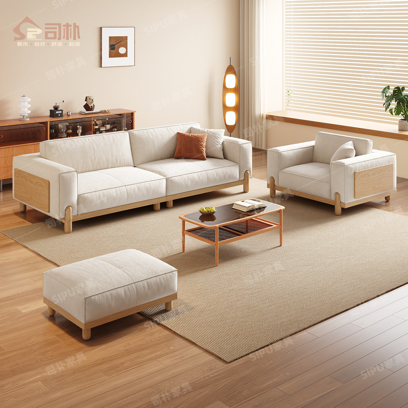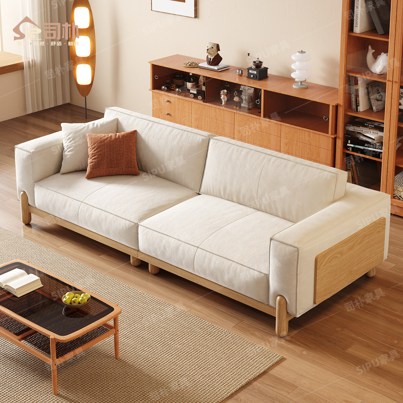 司朴原木奶油风布艺沙发实木直排现代简约雪尼尔新款豆腐块沙发
