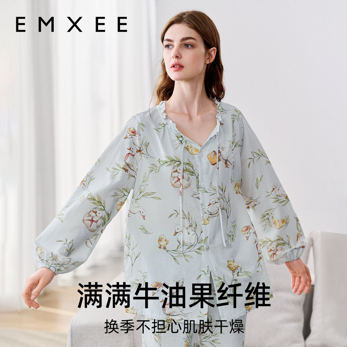 【唐艺昕同款】嫚熙夏季薄款果纱月子服牛油果纱罗孕妇睡衣家居服