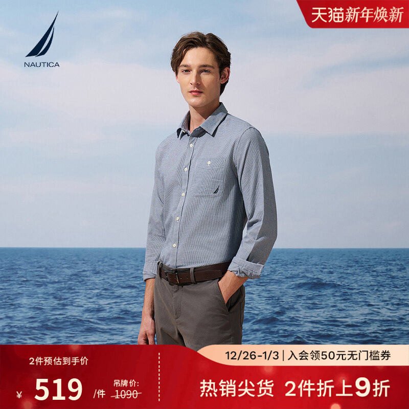 【全棉透气】NAUTICA/诺帝卡男装25秋季柔软千鸟格休闲衬衫WO5301