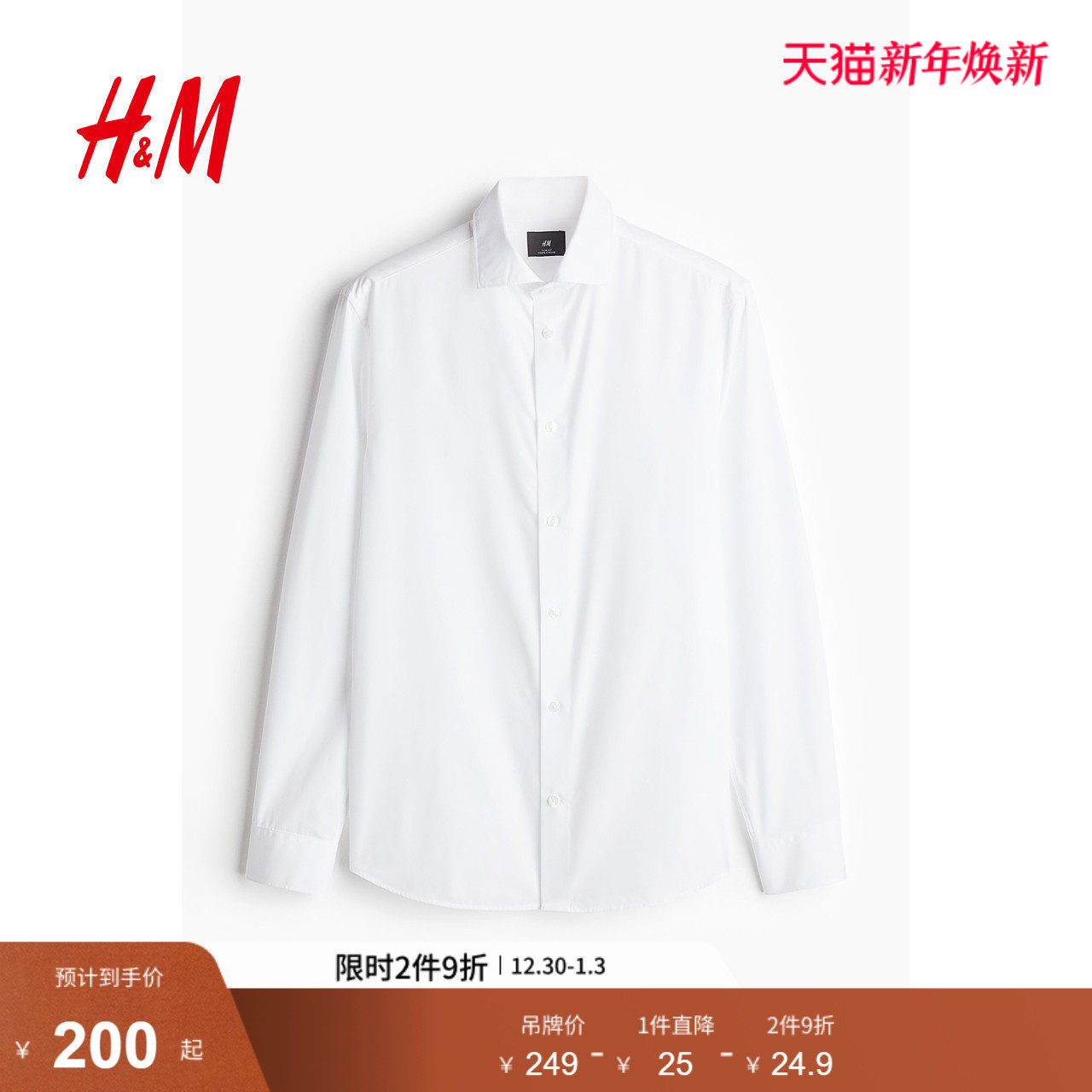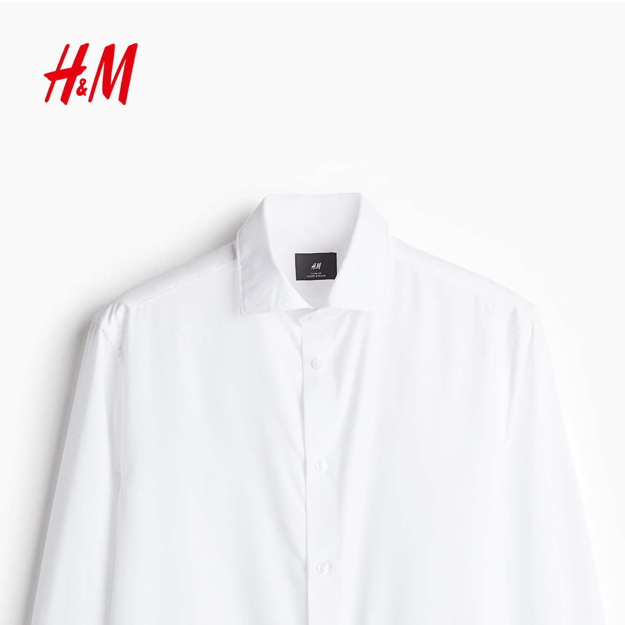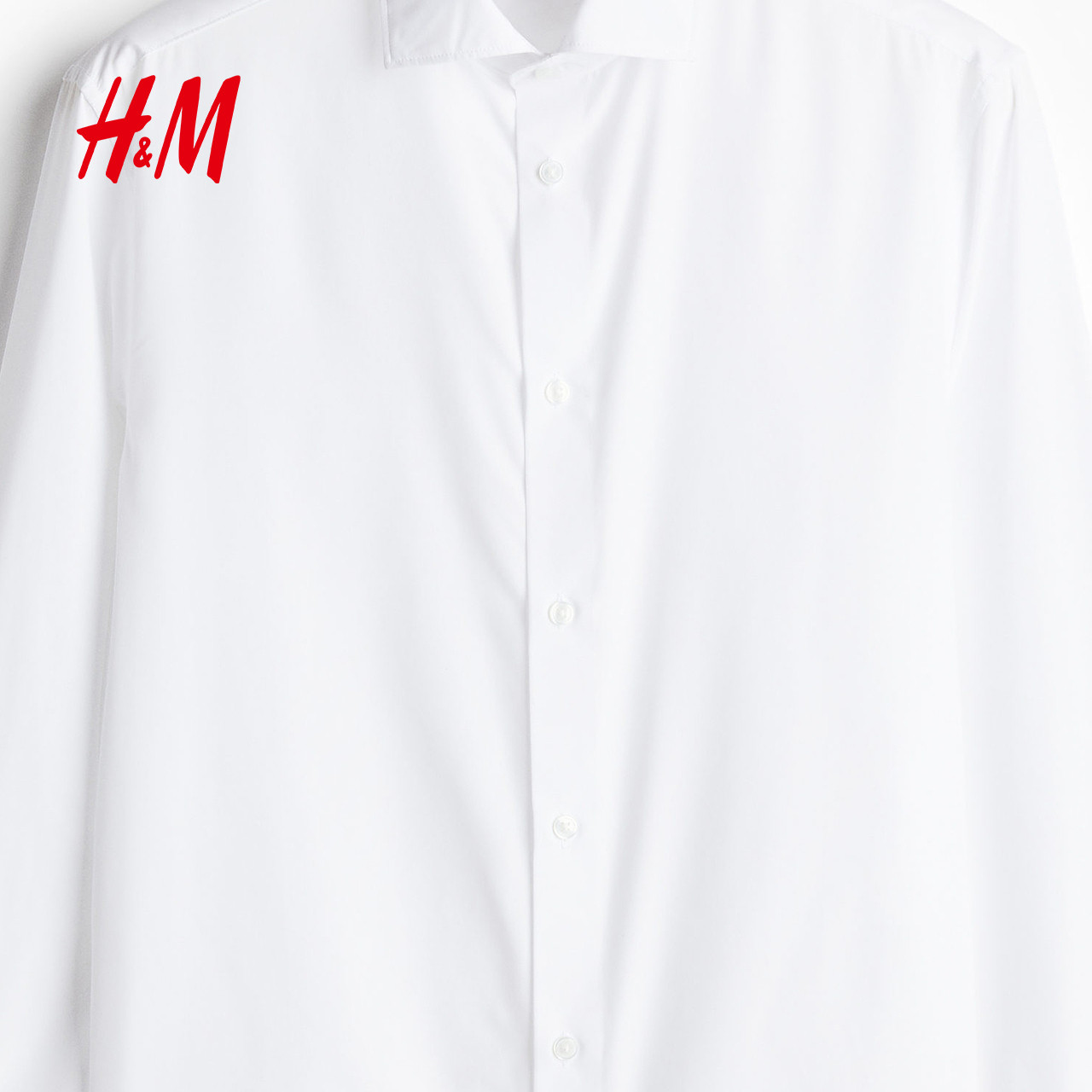 HM男士衬衫冬季通勤合身版型基础款易熨烫长袖衬衣1254614