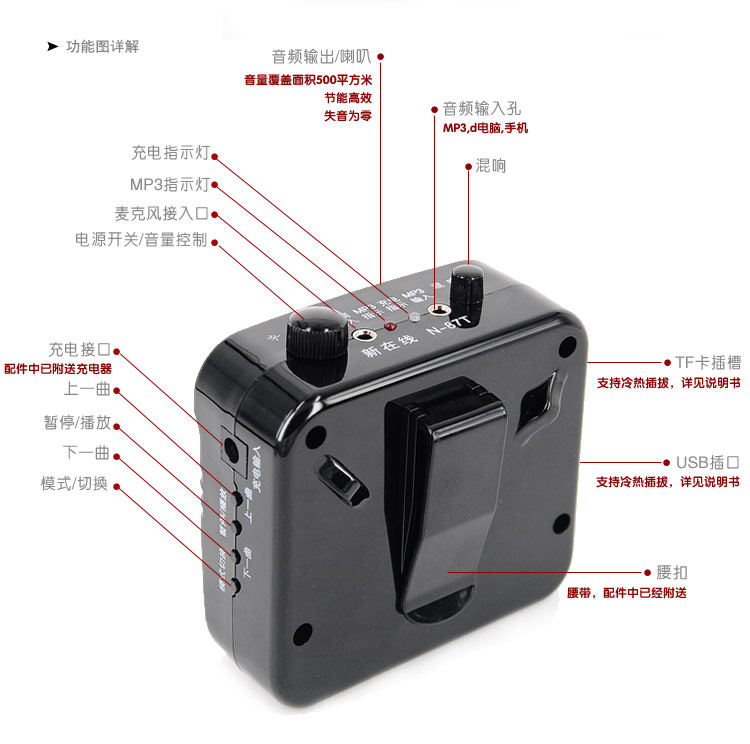 新在线N87T 扩音器教学腰挂教师老师专用上课话筒随身腰麦大功率