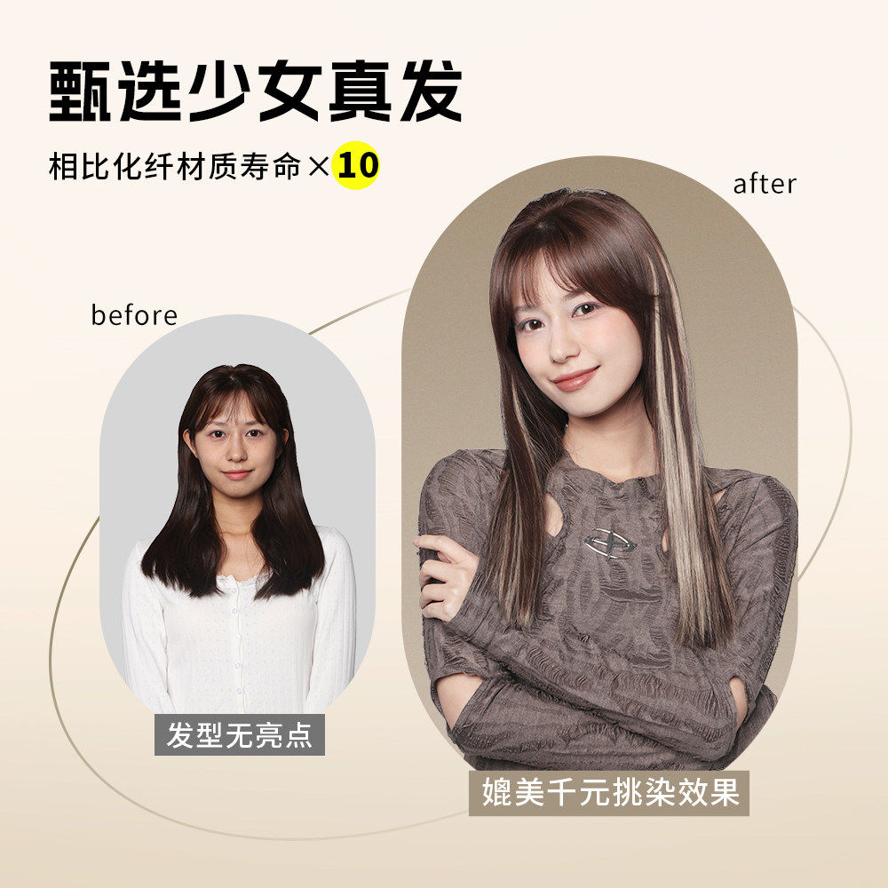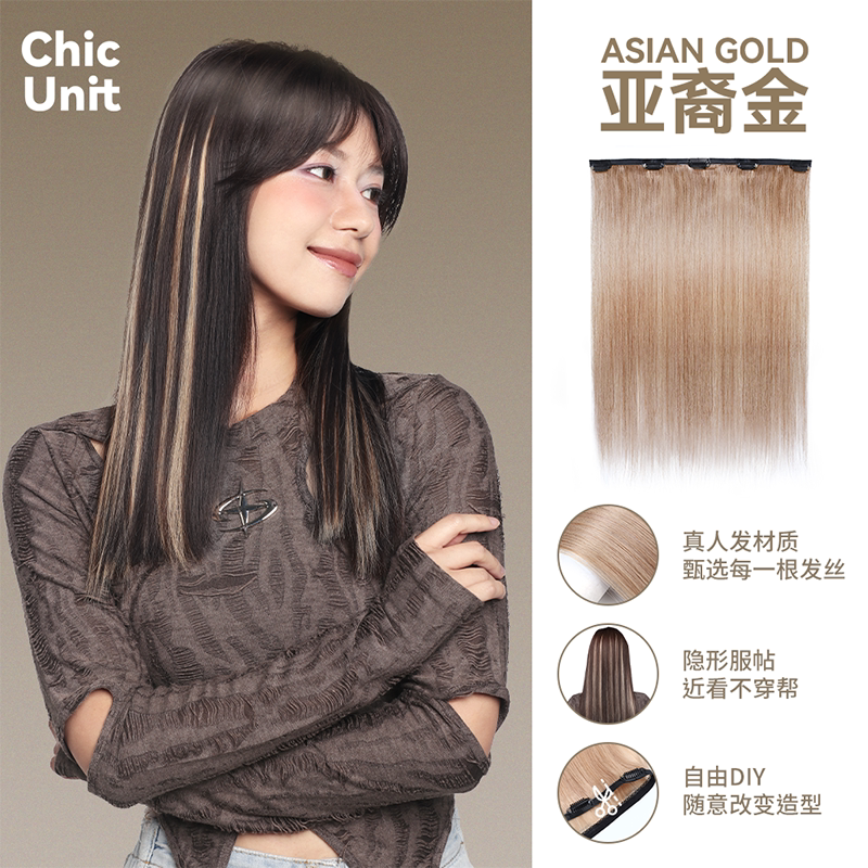 Chic Unit彩色挑染假发片真发一片式自然无痕超轻超薄挂耳染假发
