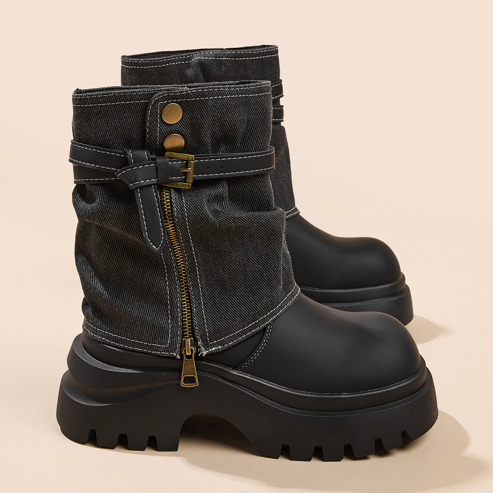 Semir女鞋时装靴女2025秋冬新款厚底高跟短靴粗跟高级感黑色靴子