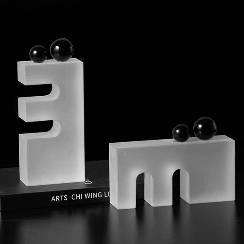 现代极简北欧轻奢创意几何水晶方块字母书档书靠书柜软装饰品摆件