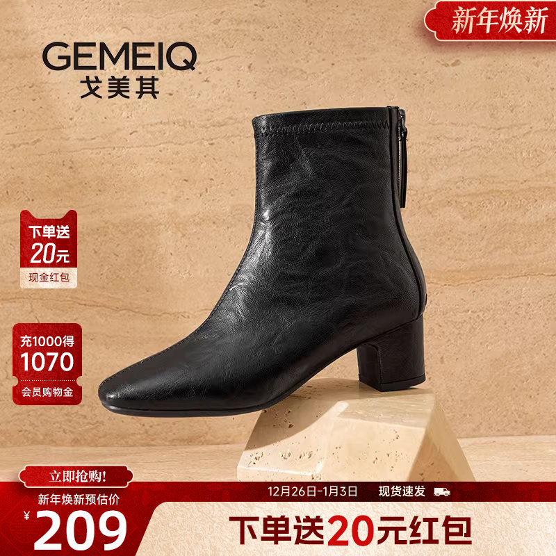 戈美其商场同款弹力瘦瘦靴法式小踝靴女2025冬季新款马丁靴子女款
