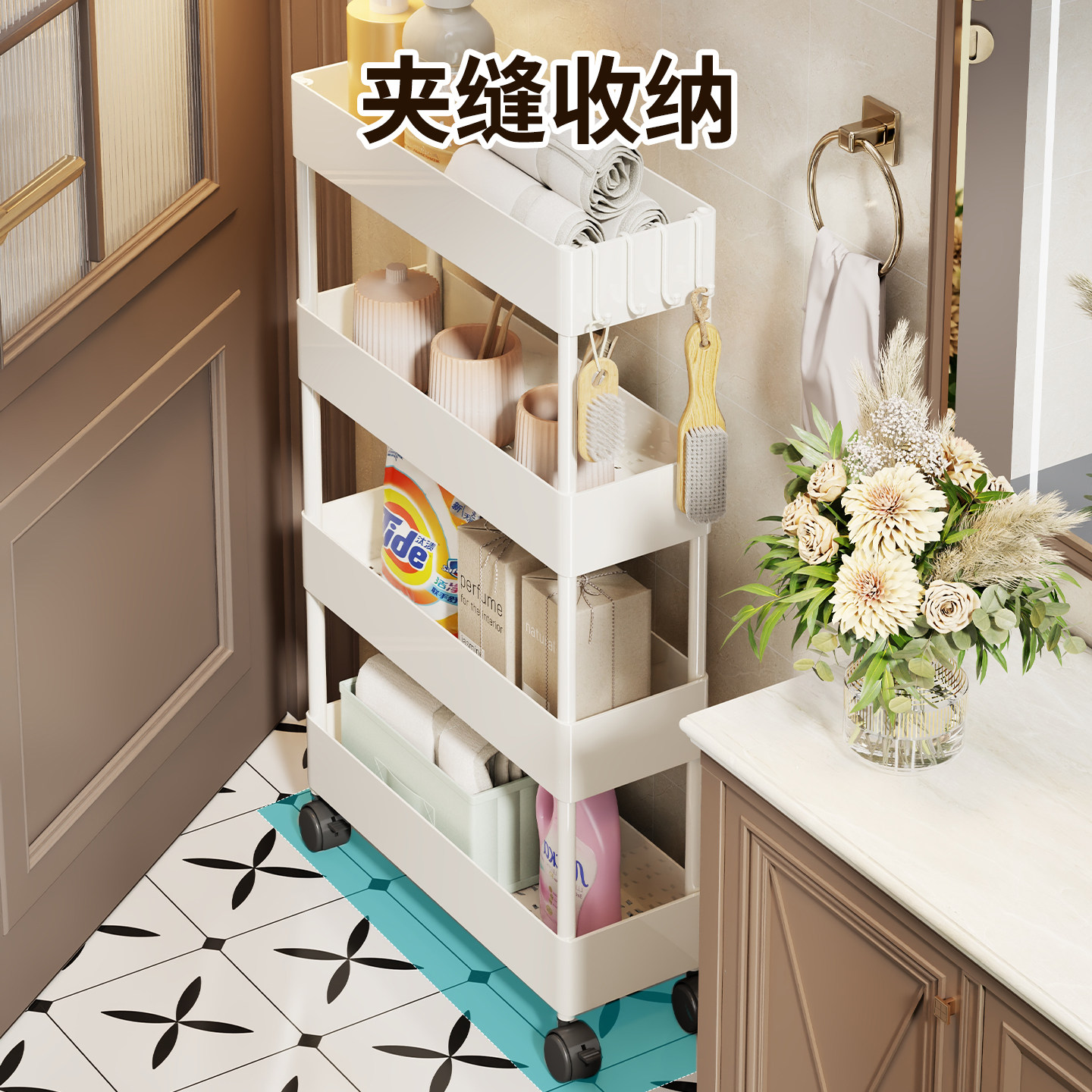 门后夹缝收纳柜卫生间超薄极窄置物架浴室多功能可移动多层储物架