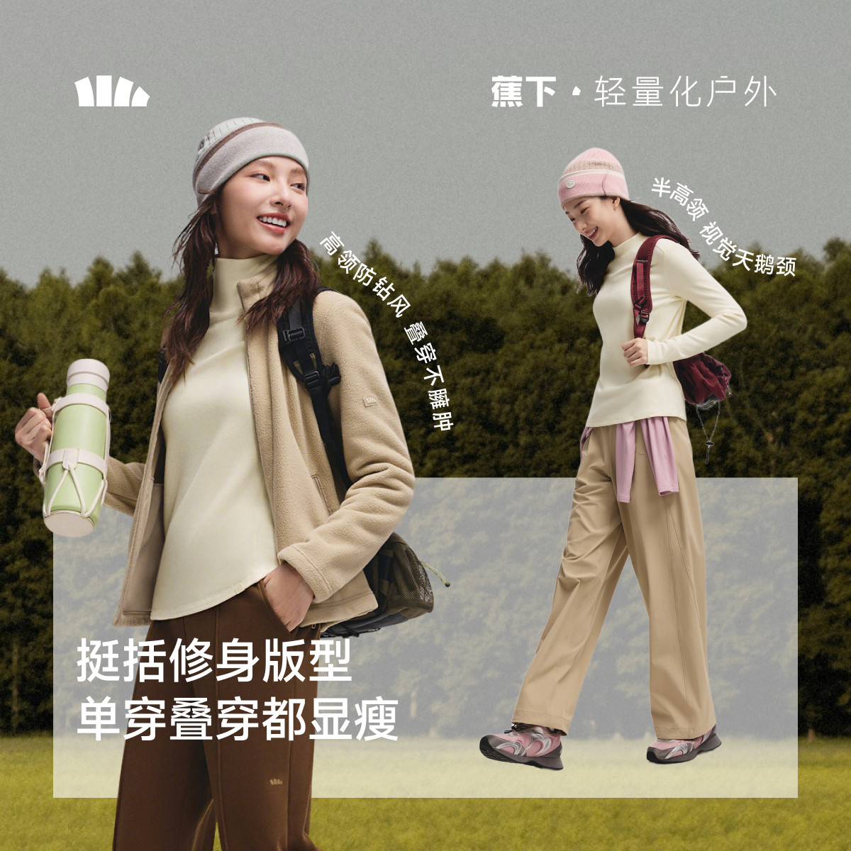 蕉下半拉链摇粒绒打底衫女士秋冬修身新款保暖户外上衣长袖T恤