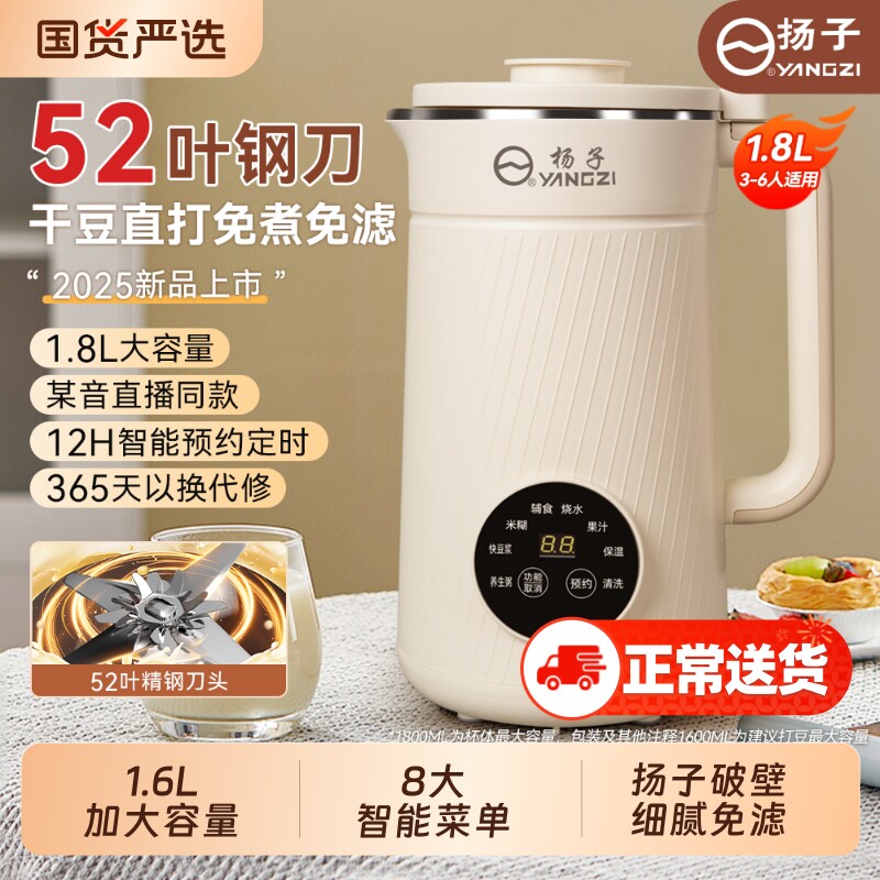 扬子破壁机家用全自动小型大容量多功能新款豆浆机料理机轻音无渣