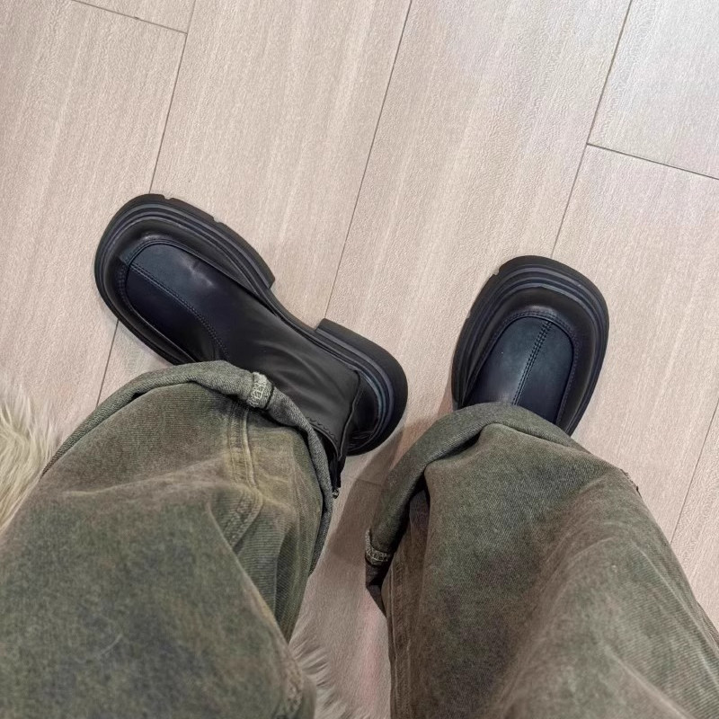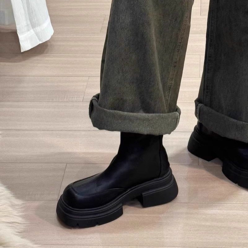 增高厚底复古女款2025新款小众方头松糕厚底jk短靴小个子马丁靴