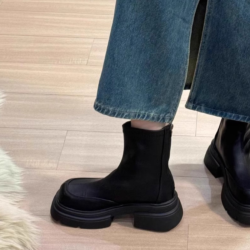 厚底黑色马丁靴女2025新款秋冬加绒英伦风切尔西瘦瘦靴方头短靴子