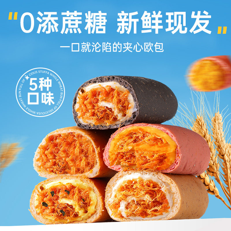 全麦肉松味面包整箱夹心欧包代早餐营养0添蔗糖独立小包装零食品