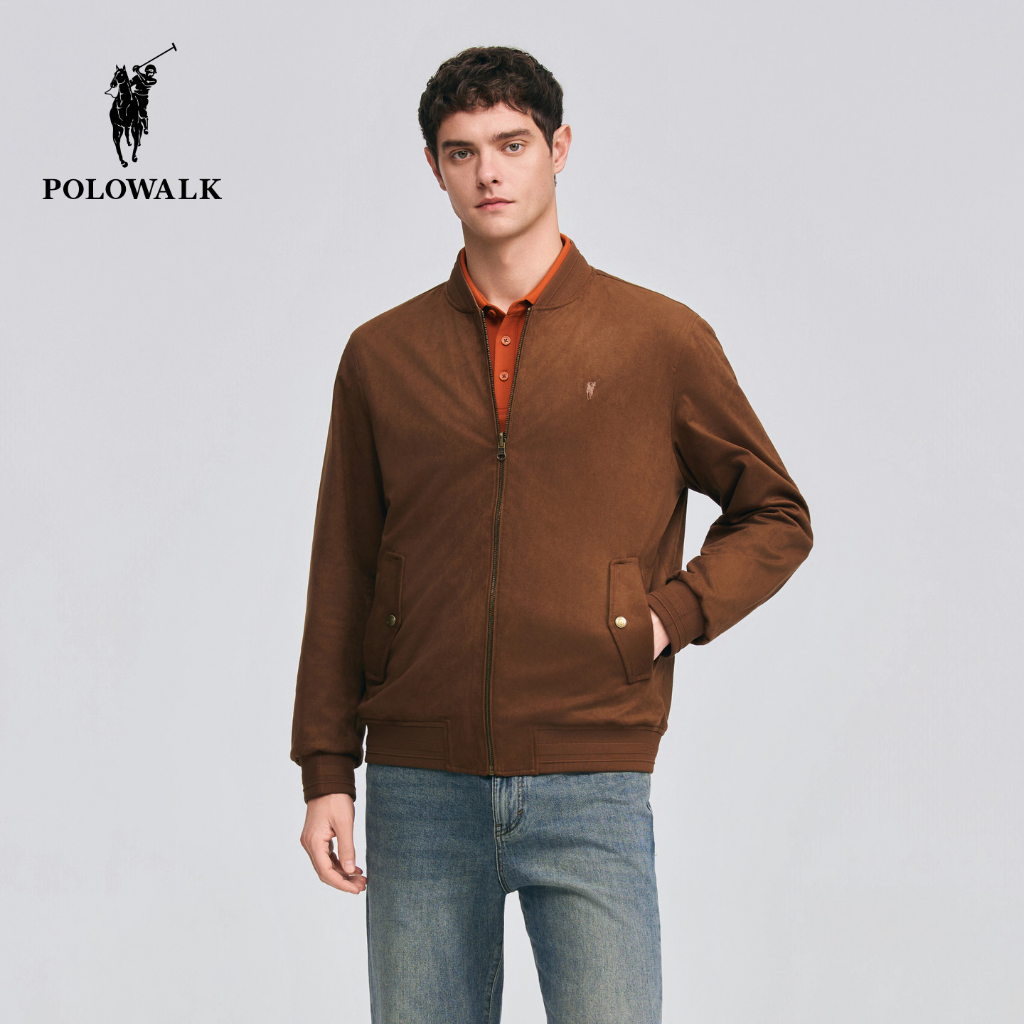 POLOWALK男式皮衣2026春季新品男装棒球领复古双面穿拉链皮衣外套