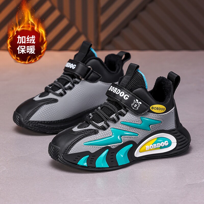 巴布豆男童加绒鞋冬季2025新款儿童棉鞋保暖二棉鞋男孩运动篮球鞋