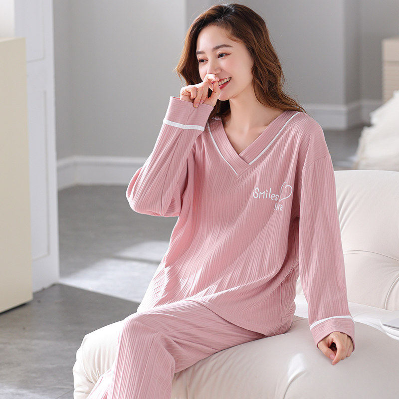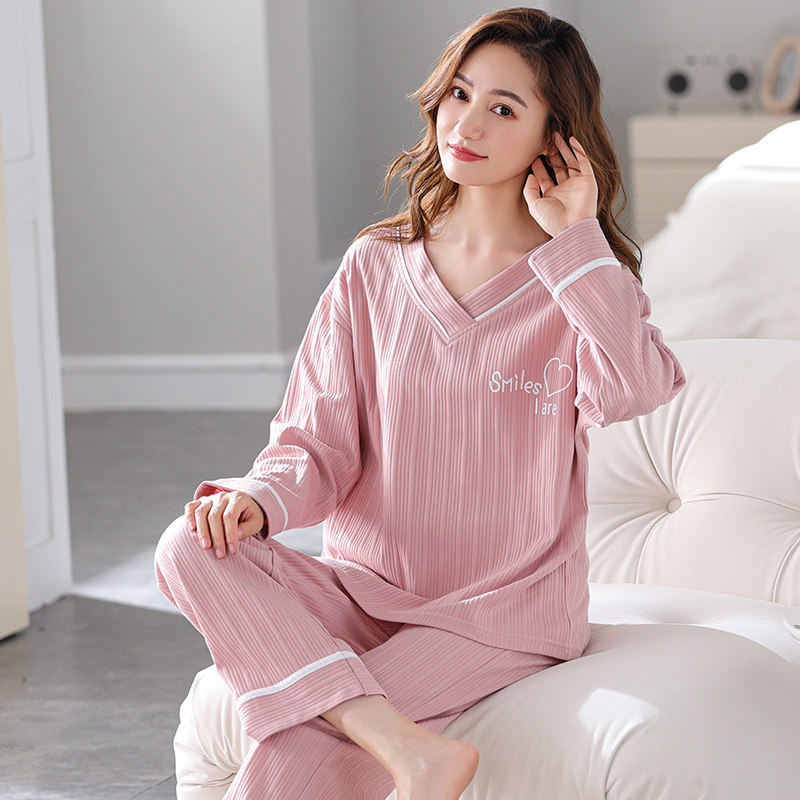 红豆春秋季睡衣女可外穿长袖套装学生夏秋冬款家红色紫色白色黑色