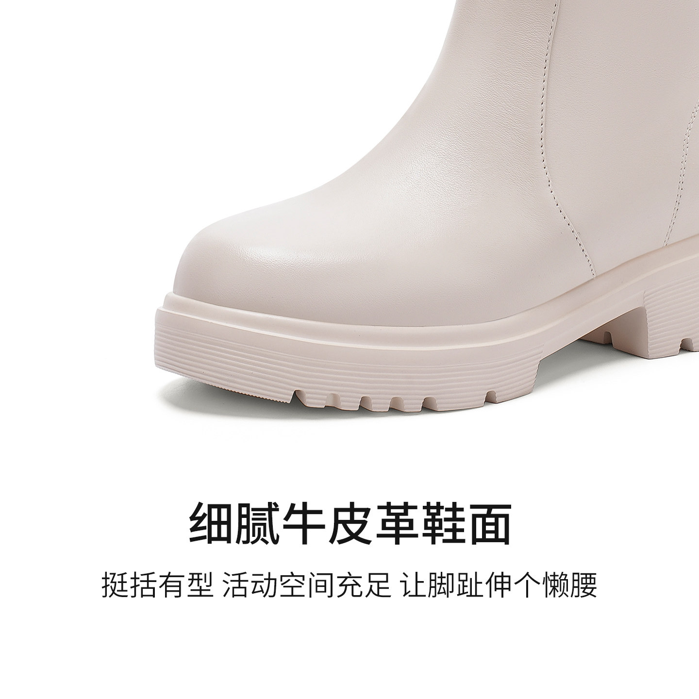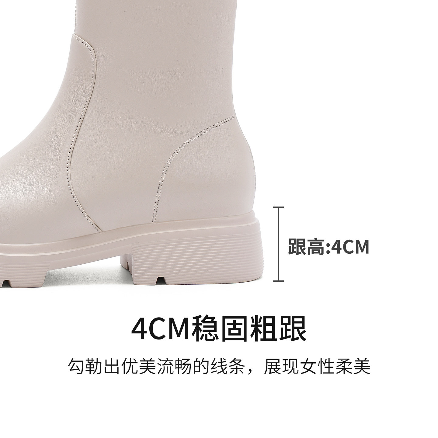 吴宣仪天美意千金靴复古厚底骑士靴加绒长靴女鞋子新款时装靴皮靴