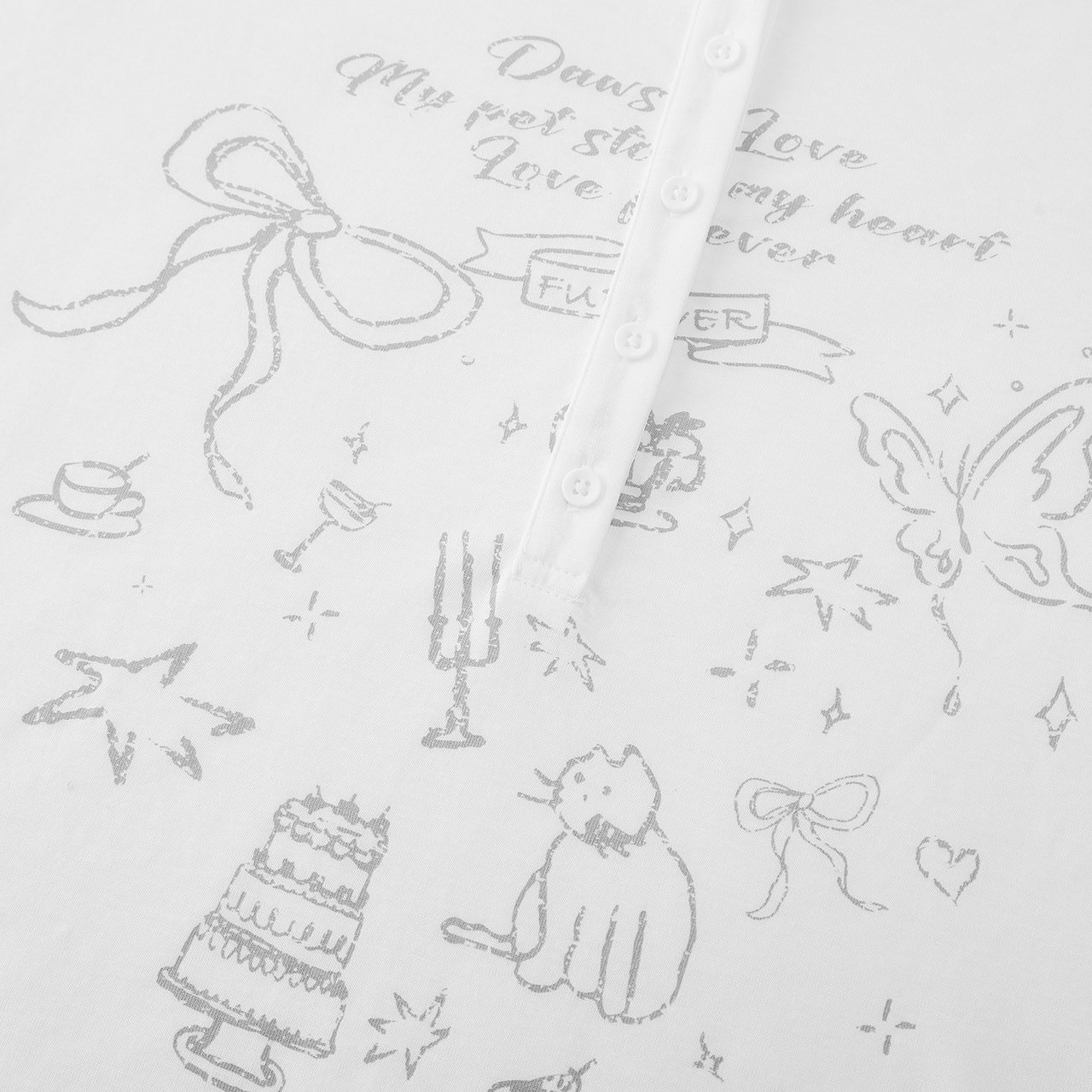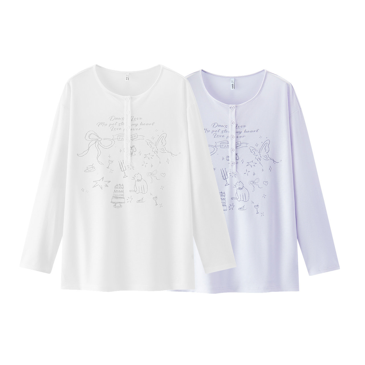 森马长袖T恤女夏中长款oversize印花2026新款慵懒甜美少女感罩衫