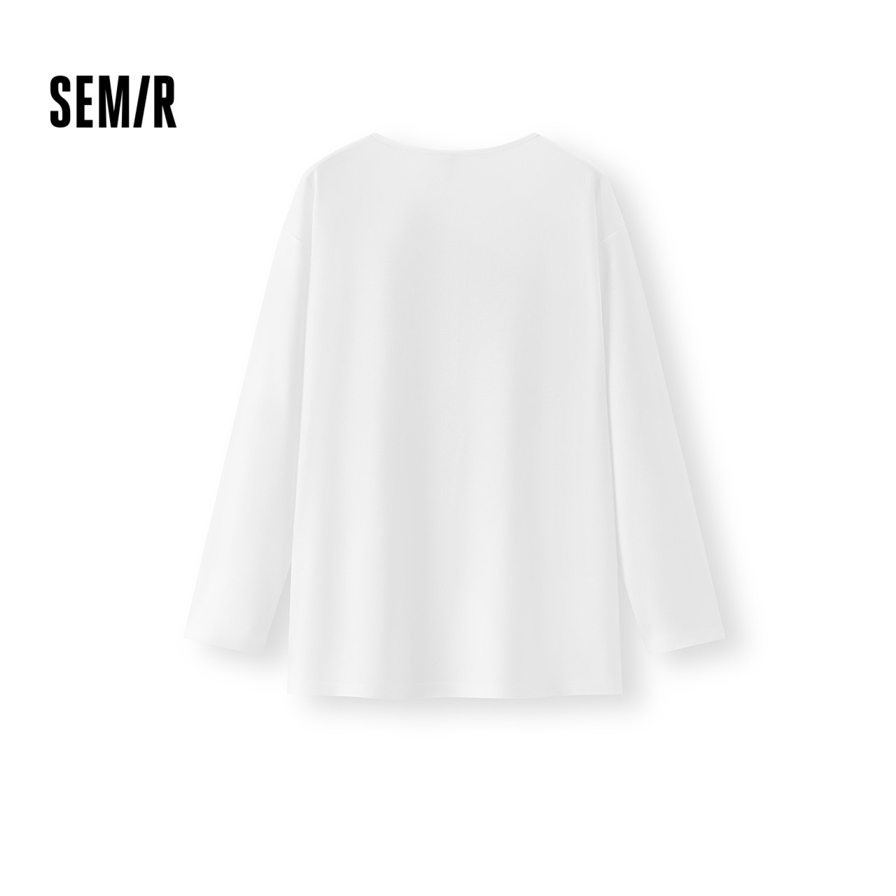 三福长袖上衣女2025新款秋冬季圆领内搭打底衫修身白色t恤女装