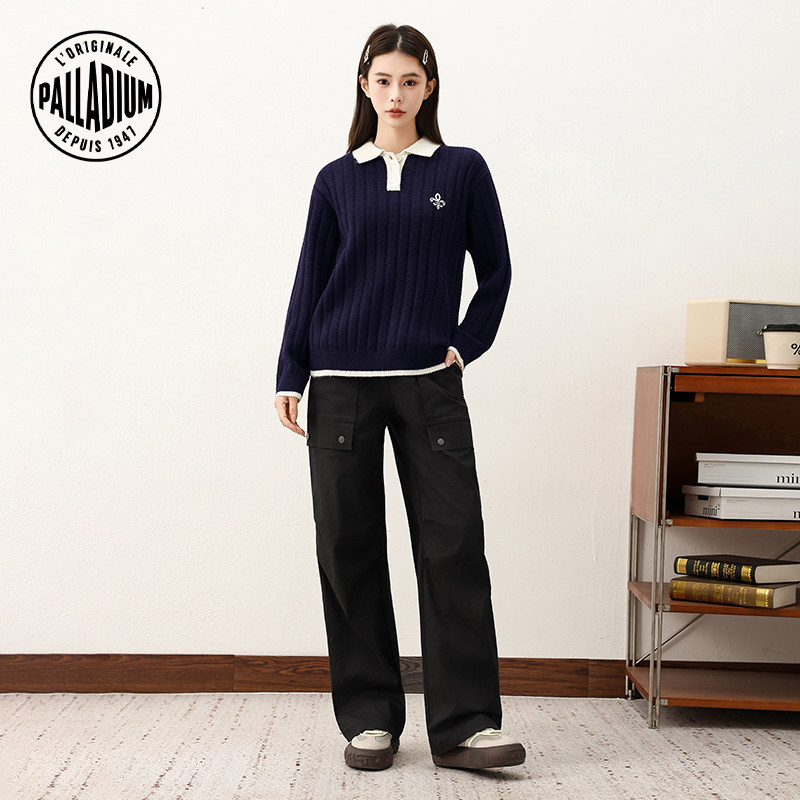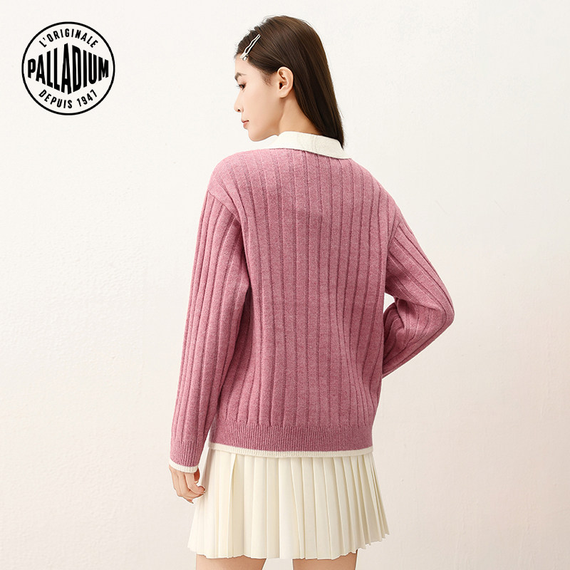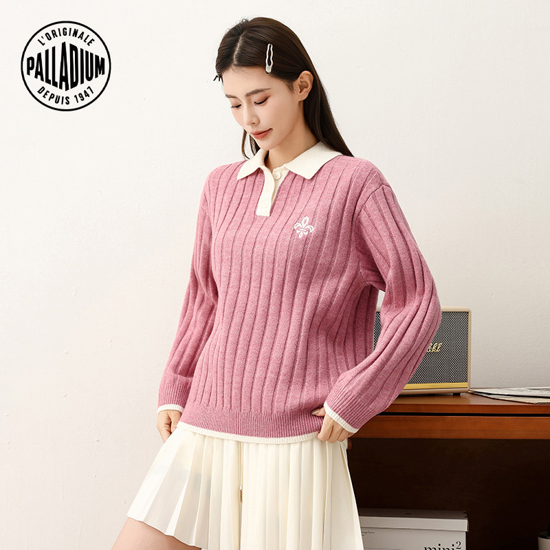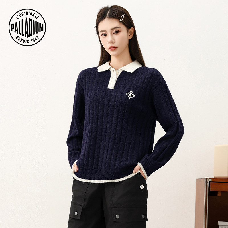 PALLADIUM帕拉丁上装时尚拼色设计女款翻领毛衫1913661
