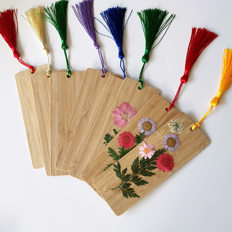 空白竹片书签幼儿园古风干花木质压花植物标本diy真花材料包流苏古典中国风小学生创意精美手工自制生日礼物