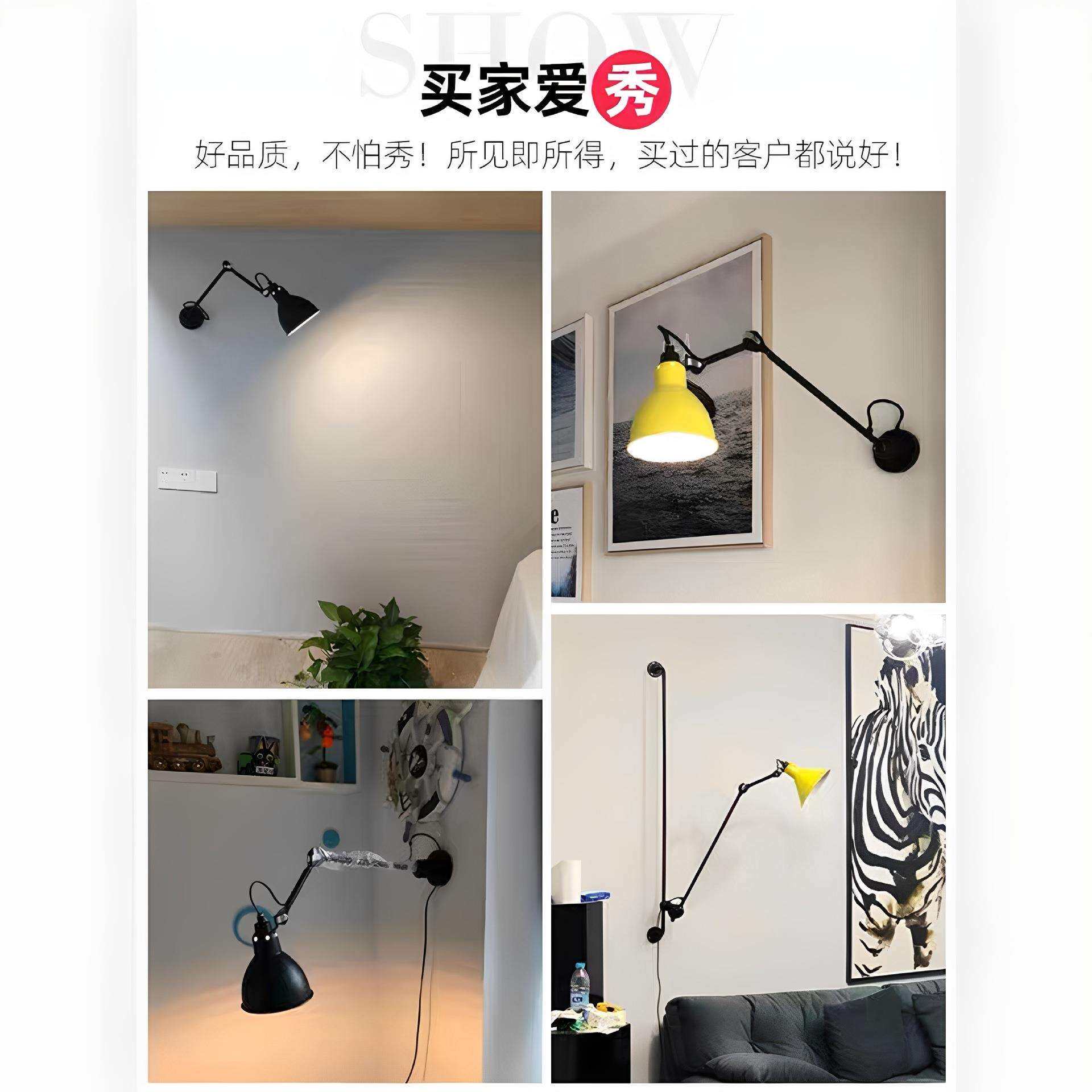设计师款创意长臂摇臂壁灯工业风可伸缩升降卧室床头客厅书房阅读