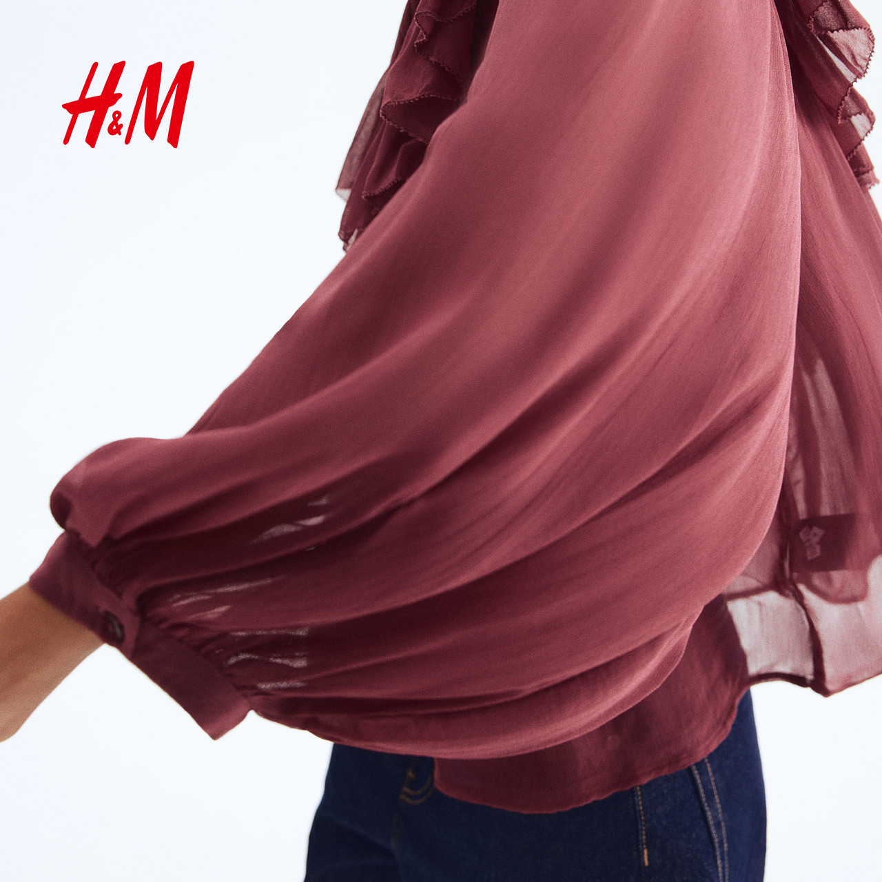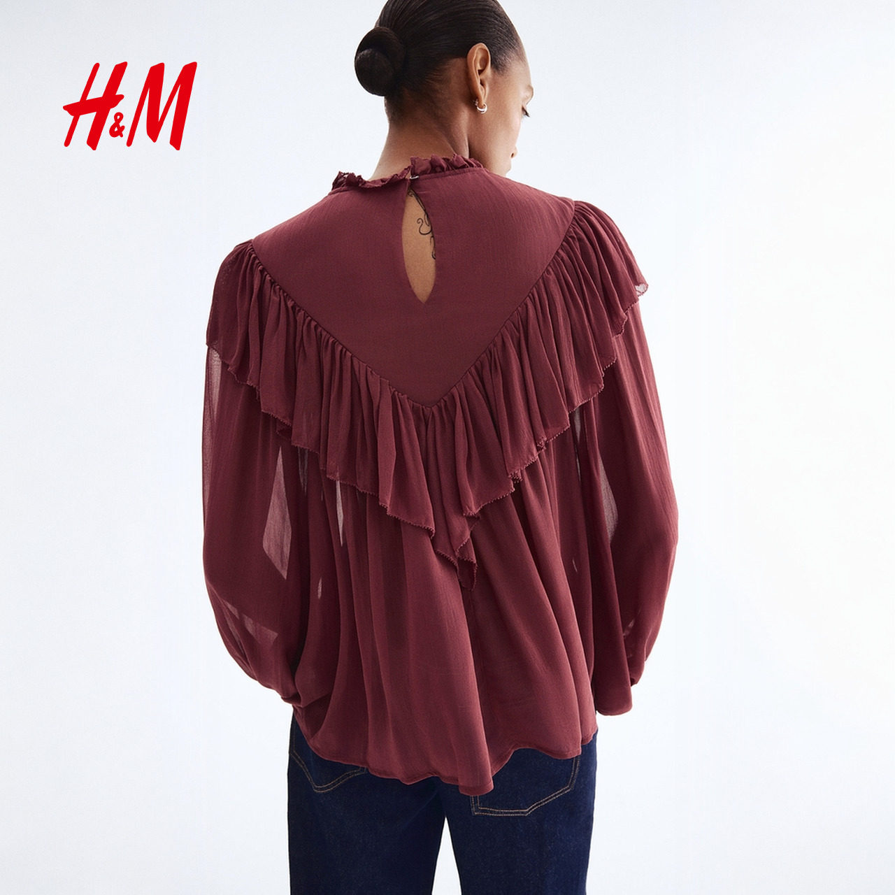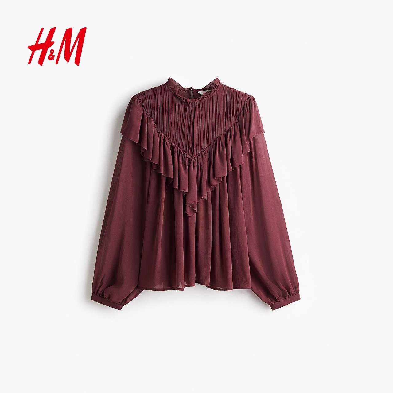 HM2025秋季新款女装荷叶边装饰雪纺衬衫1304737
