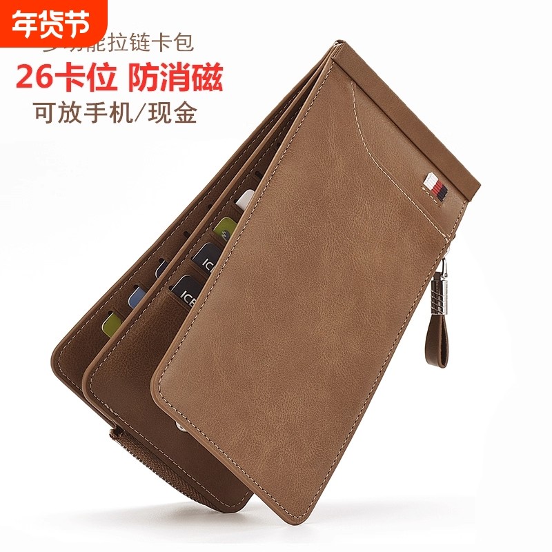 2025新款卡包男多卡位超薄长款拉链钱包手机包信用卡套证件收纳包
