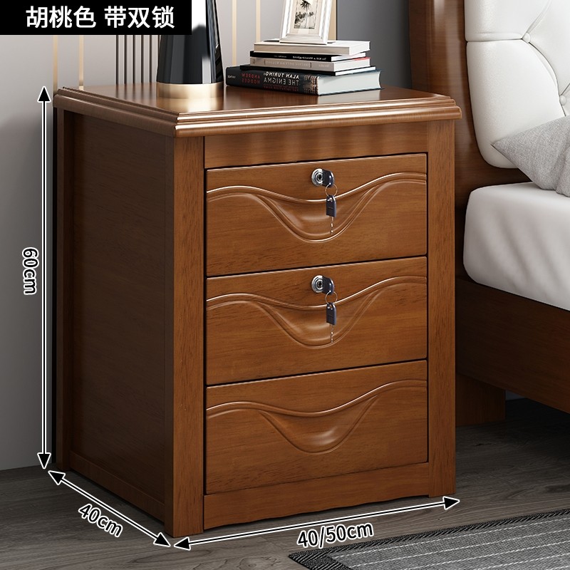床头柜实木卧室家用简约现代带锁床边储物柜胡桃木色床边储物柜