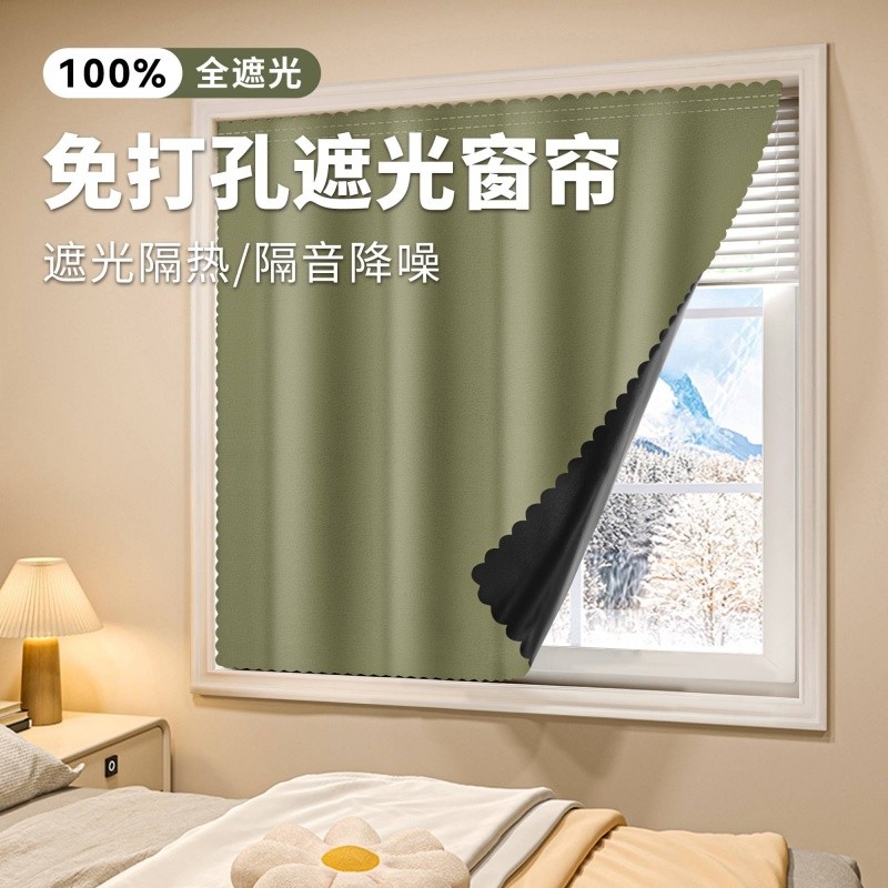 窗帘免打孔全遮光魔术贴帘子客厅贴帘门帘遮挡宿舍粘贴窗户隔热