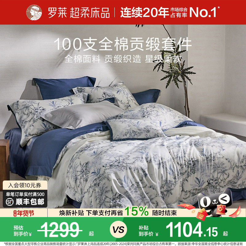 罗莱家纺25秋冬新品100支新疆棉四件套全棉贡缎双人床套件被套