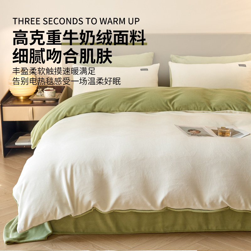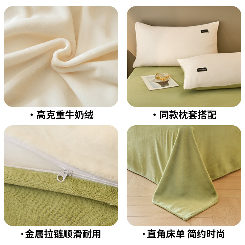 【顺丰快递】慕斯牛奶绒四件套暖绒套件床单床笠秋冬保暖牛奶绒