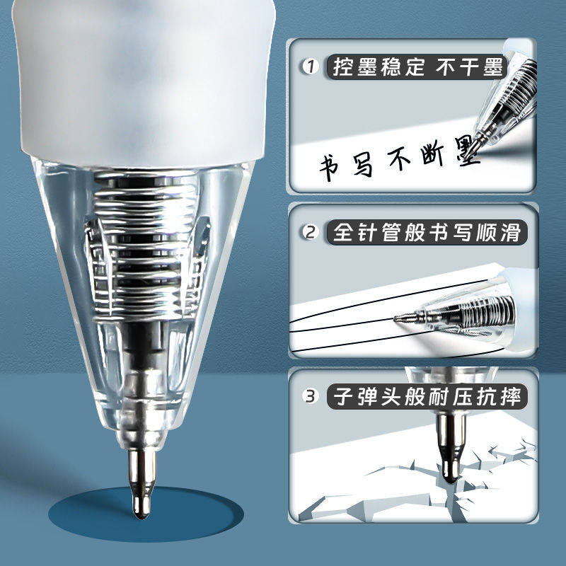100支按动中性笔笔芯子弹头速干替换芯0.5写字粗笔心学生用按压式碳素水笔芯黑笔摁动批发文具用品送晨光水笔