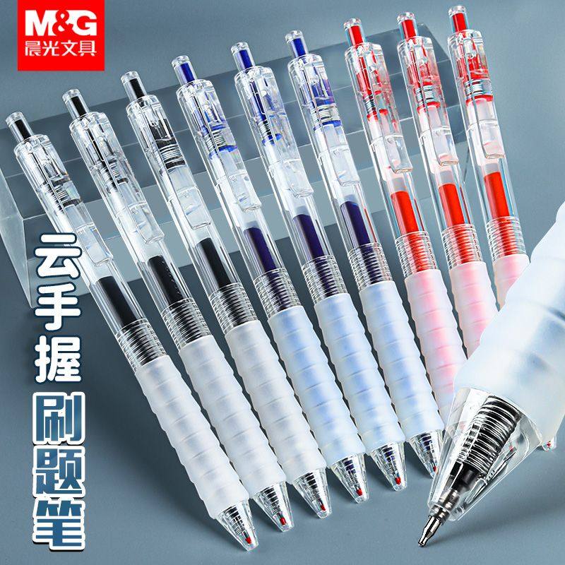 晨光作业神器ST尖按动中性笔蓝色0.5mm速干云握手学生刷题笔J0601