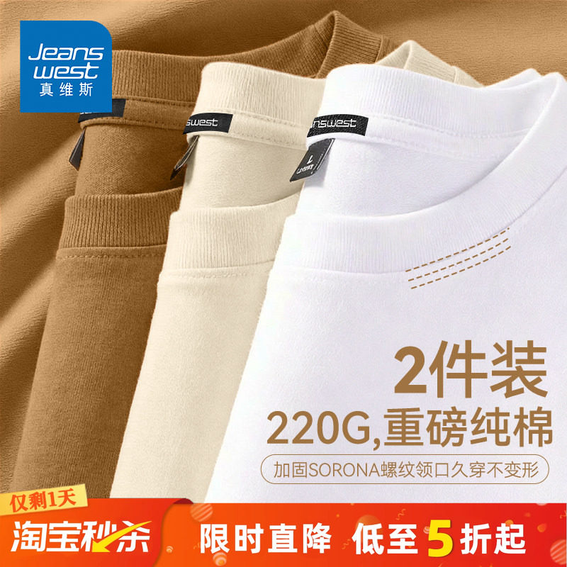 GV真维斯纯棉男t恤短袖夏季宽松运动圆领打底衫男士重磅半袖上衣A