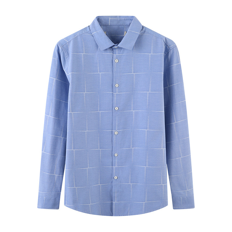 100%纯棉红豆牛津纺衬衫男长袖新款条纹休闲蓝色衬衣男士送老公