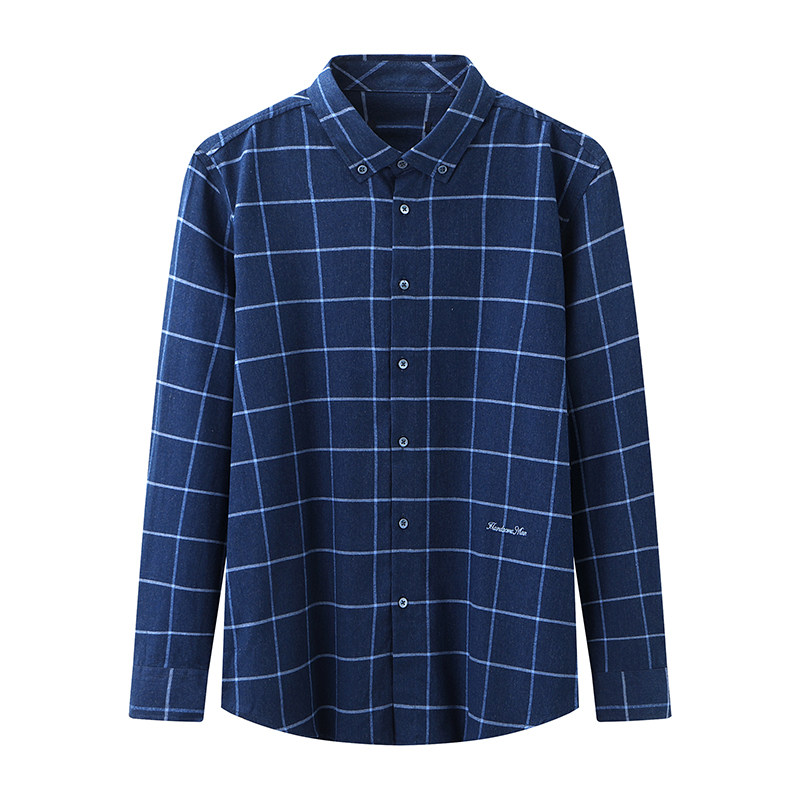 啄木鸟秋季新款男士长袖100%全纯棉磨毛格子衬衫 高级感休闲衬衣